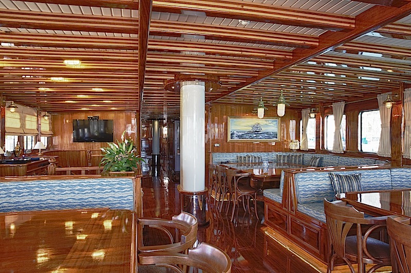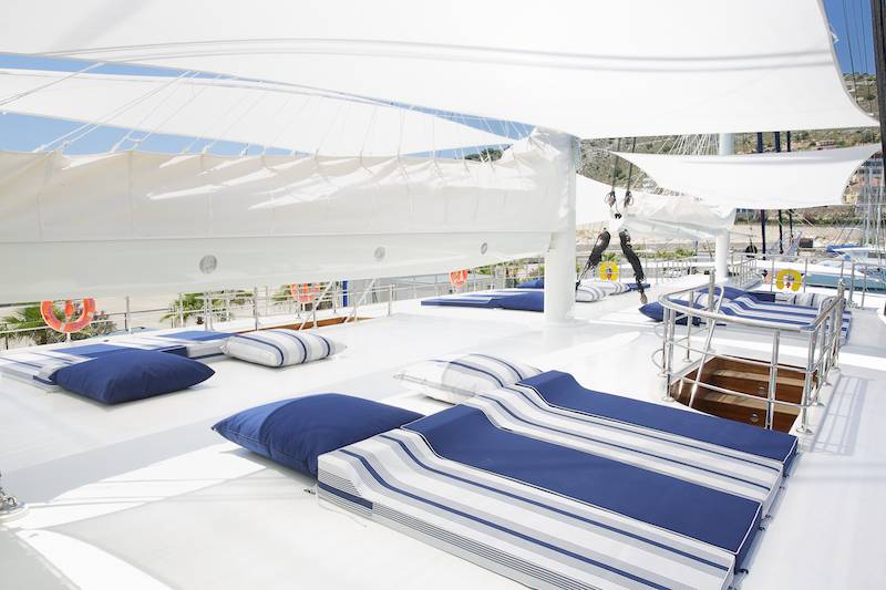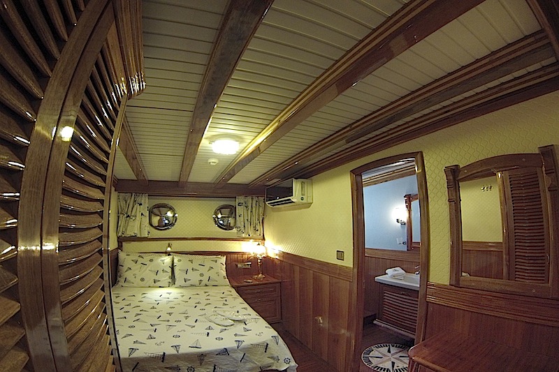 | Bis zu 36 Gäste; 10 Doppelkabinen; 4 Dreibettkabinen, 2 Zweibettkabinen, Salon und alle Kabinen mit Klimaanlage, TV & DVD-Player in der Kabine, Musikanlage in allen Kabinen, Duschkabine und Toiletten im Haushaltsstil in allen Kabinen, separate Mannschaftskabinen |