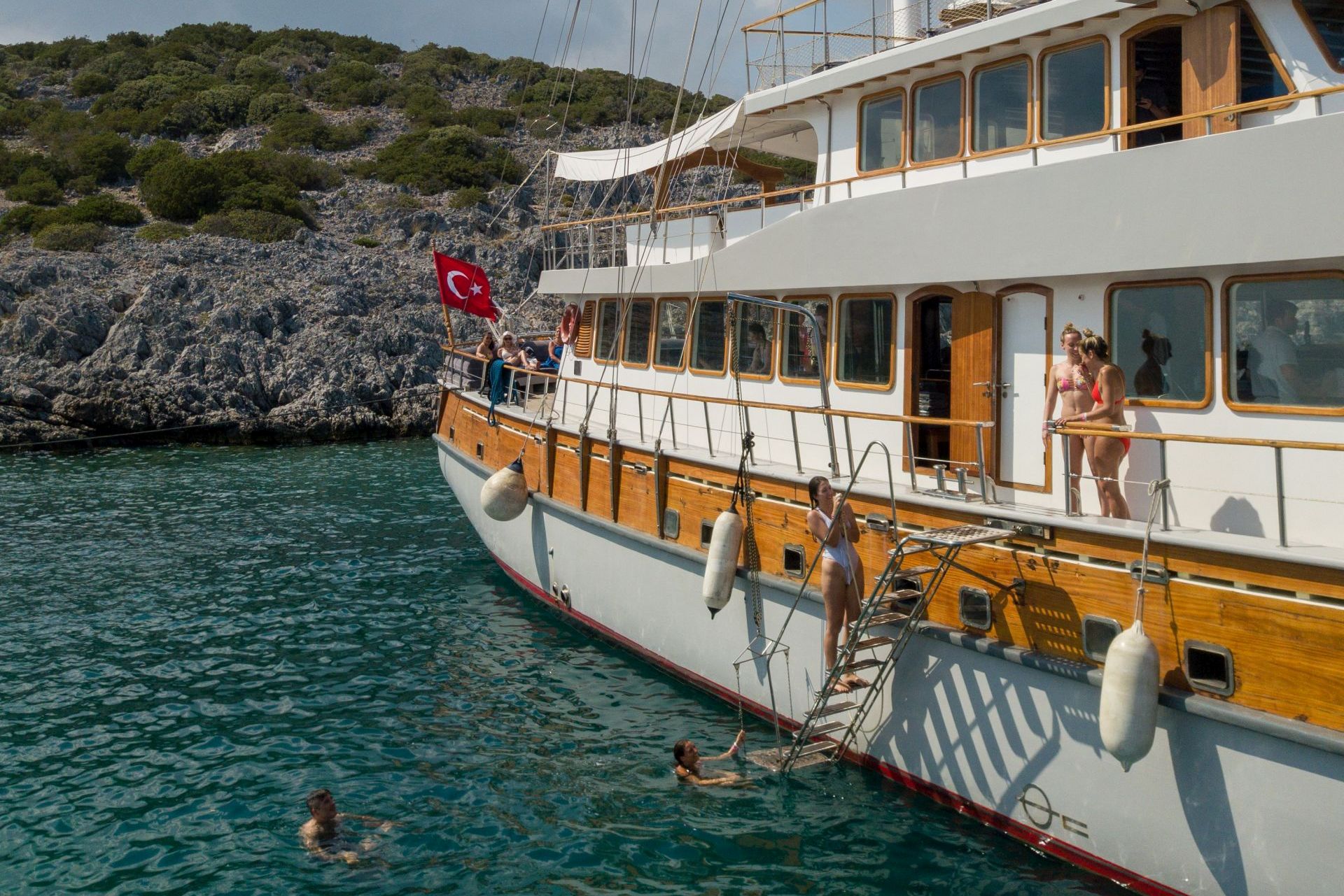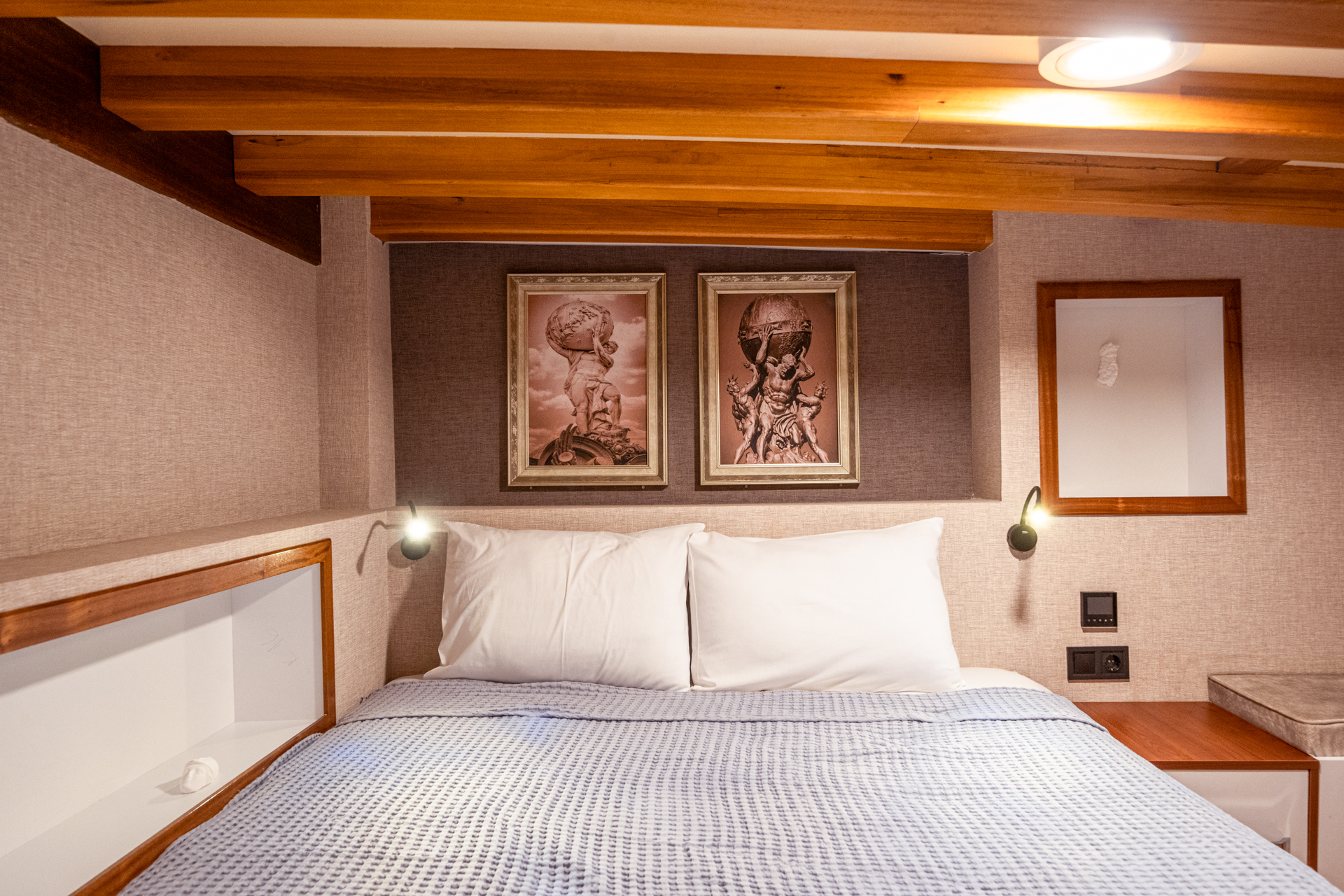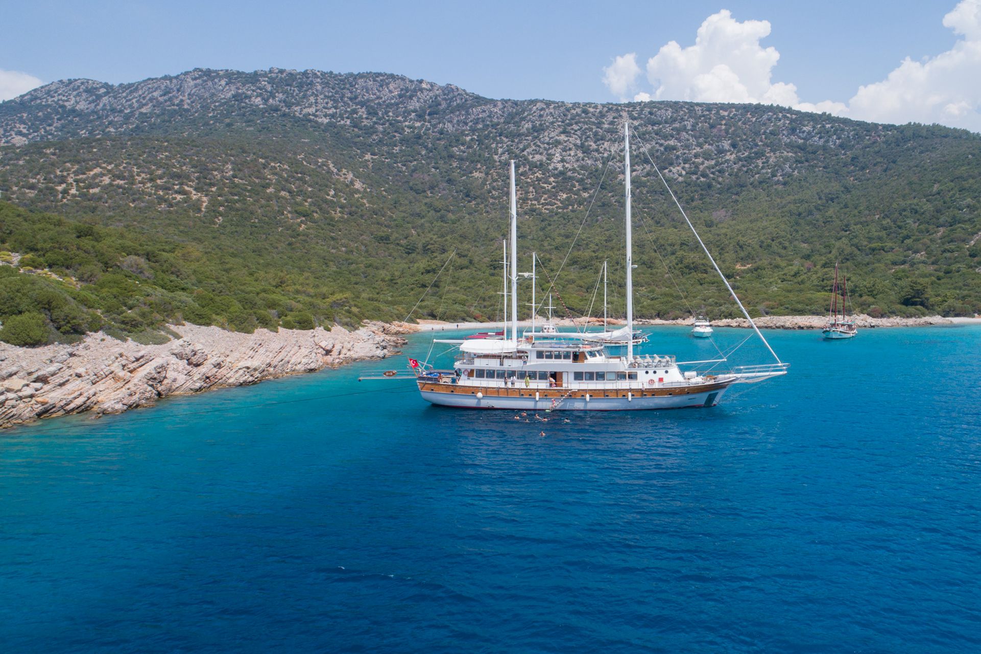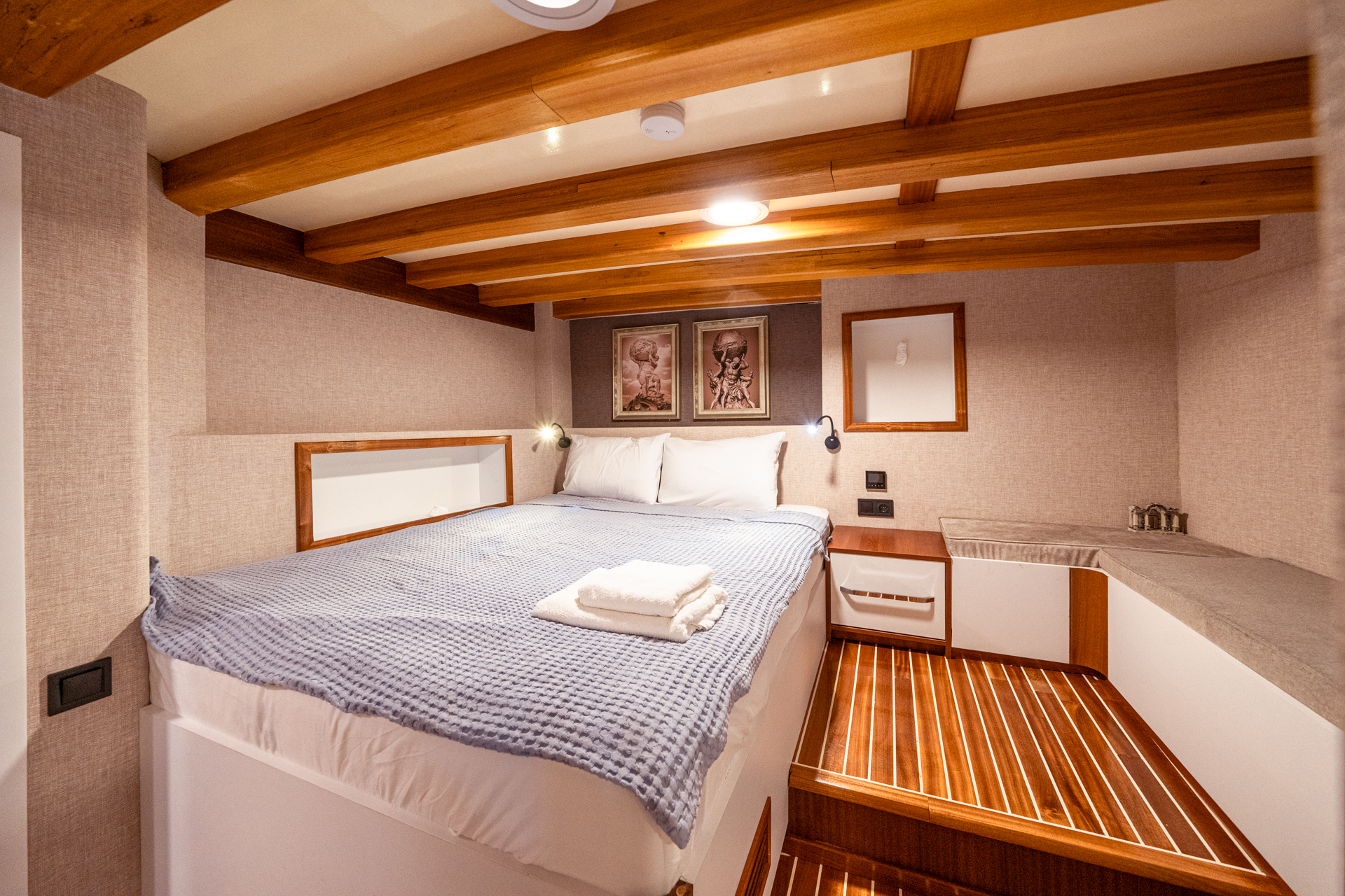 | Die Gulet Boreas ist 43 Meter lang, 2010 gebaut und 2023 renoviert. Sie verfügt über 16 Kabinen – acht Doppel-, sechs Dreibett- und zwei Einzelkabinen – und bietet Platz für bis zu 36 Gäste. Jede Kabine hat ein eigenes Bad, Klimaanlage ist 18 Stunden täglich verfügbar. Mit einer Breite von 10 Metern bietet sie große Außenflächen mit Essbereichen im Schatten, gepolsterten Sitzplätzen und weiten Sonnenbereichen. Der Salon ist geschmackvoll eingerichtet und bietet eine Lounge und einen Essbereich. Zur Wassersportausstattung gehören ein 50 PS Beiboot, SUP-Board, Wasserski, Ringo, Kanu, Schnorchel- und Angelausrüstung. Angetrieben von zwei 450 PS Cummins-Motoren und 115 + 41 + 13 kVA Generatoren, erreicht sie 10 Knoten. Die Boreas ist ideal für große Gruppen, die Komfort und eine unvergessliche Blaue Reise erleben möchten. |