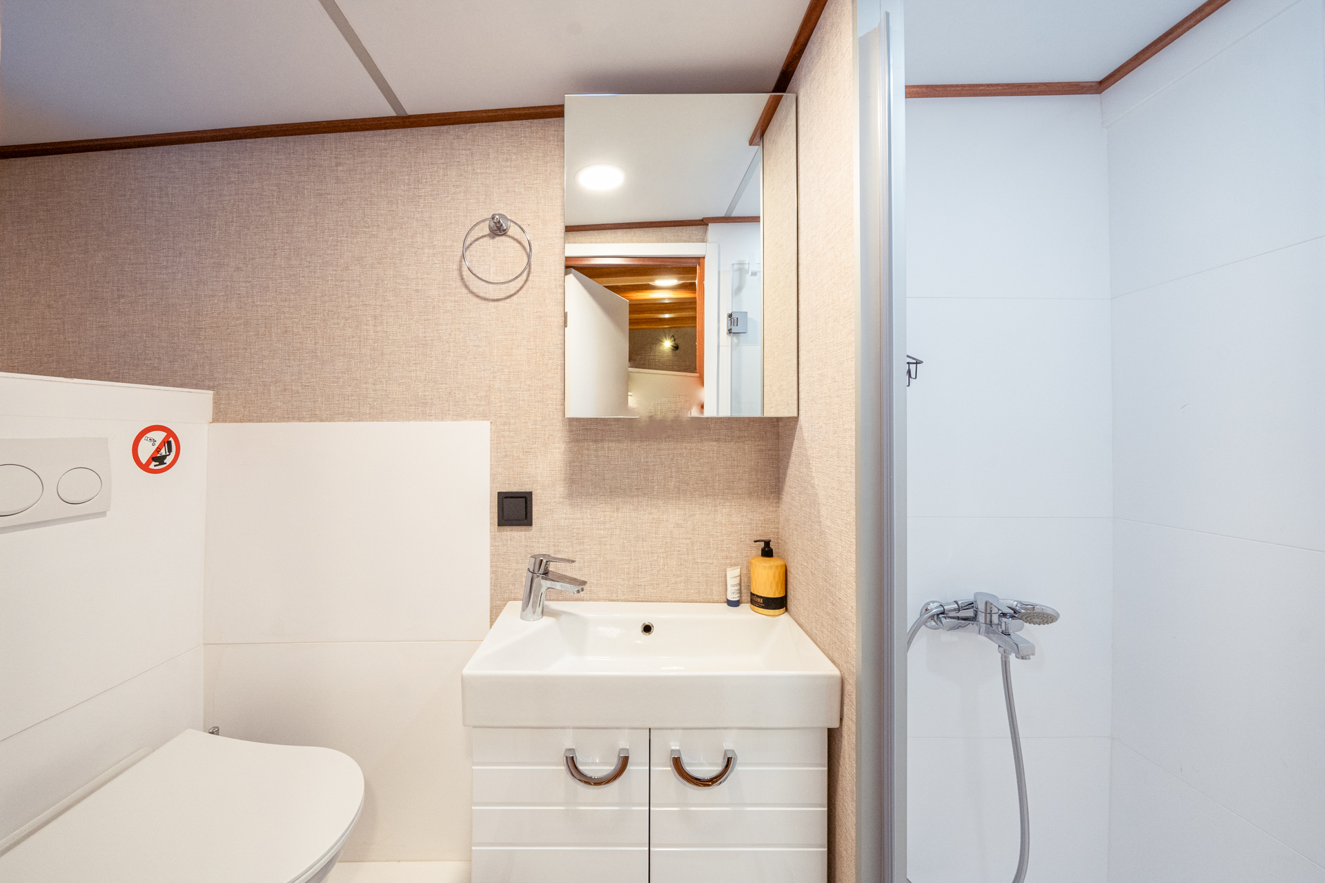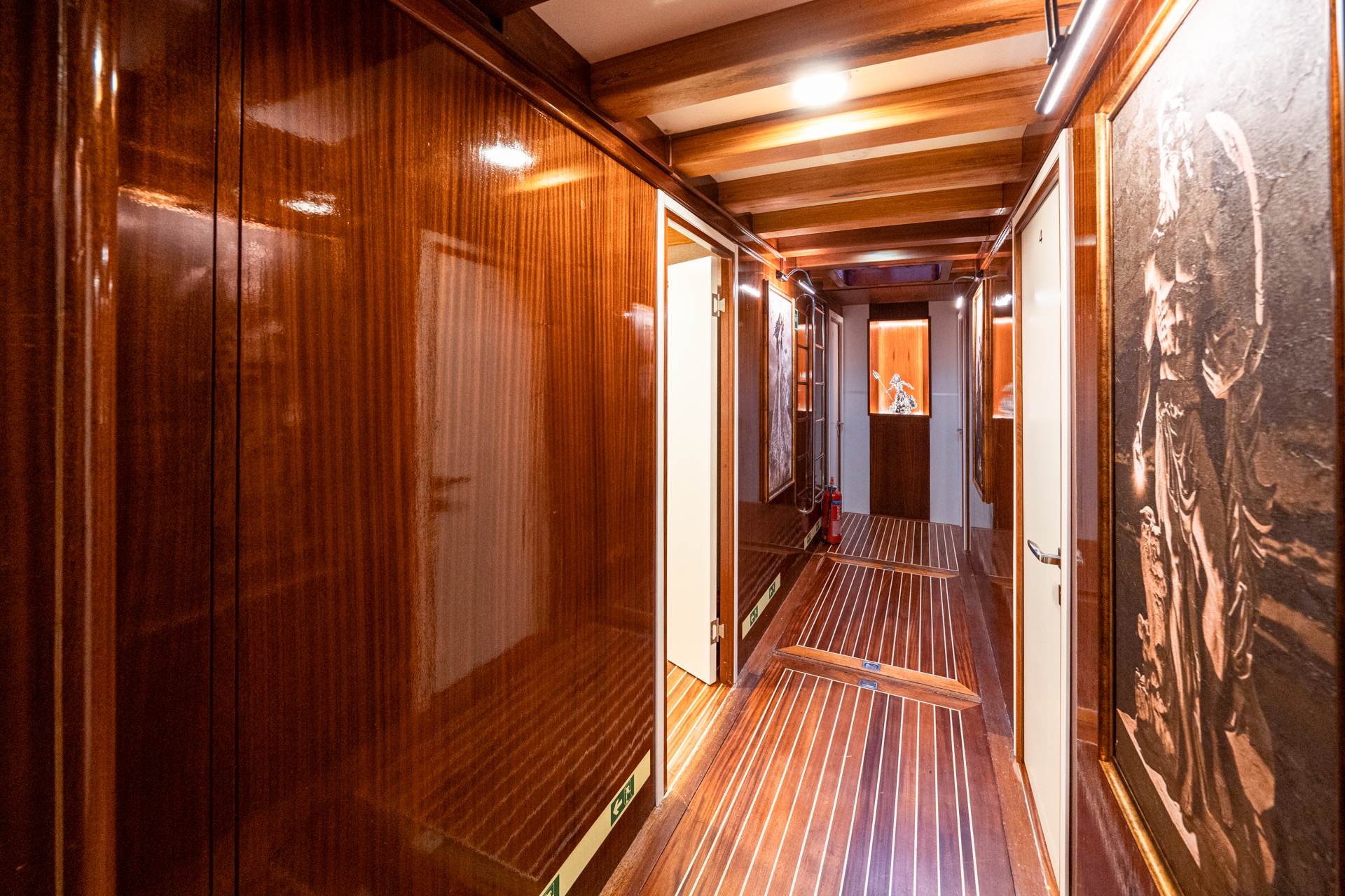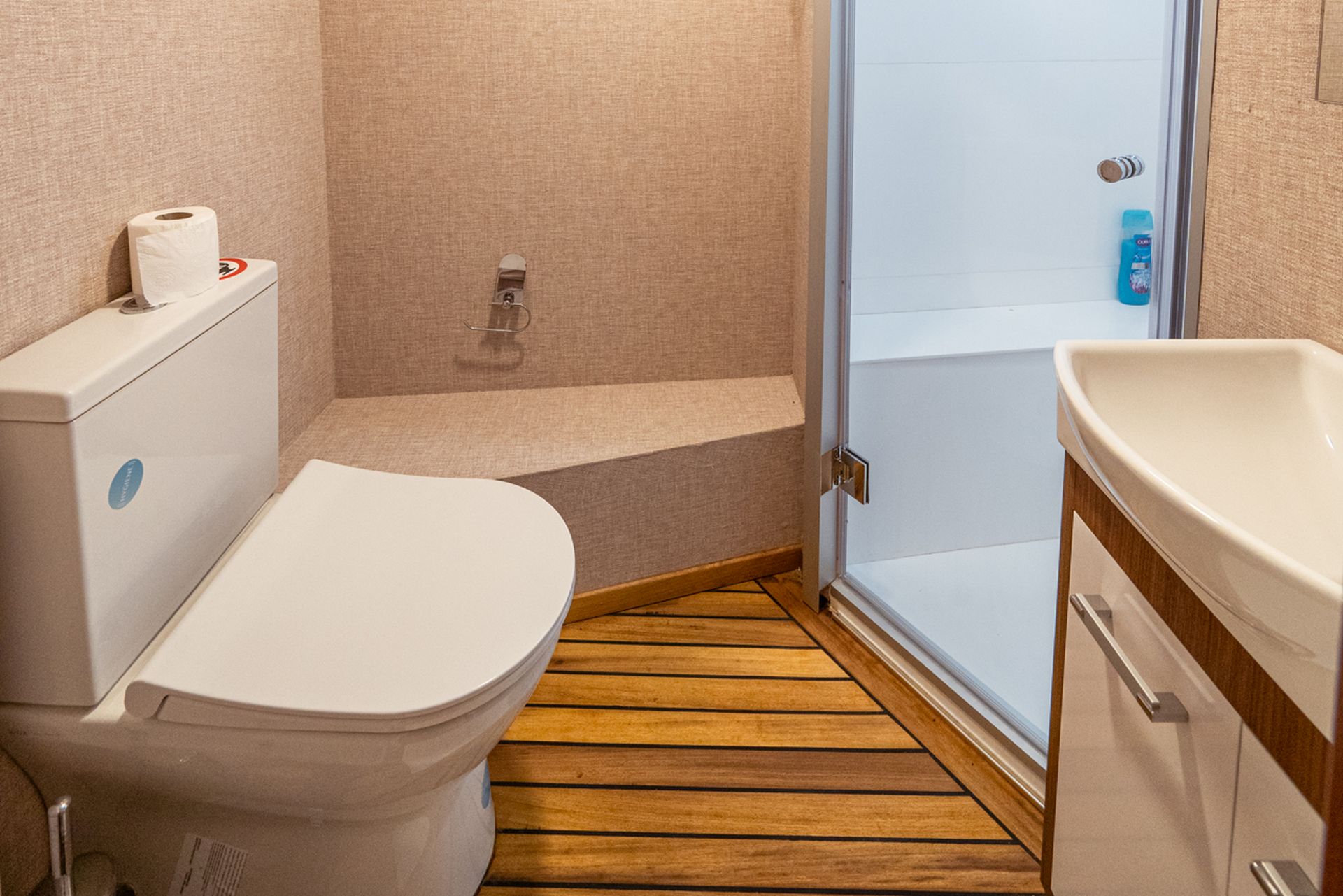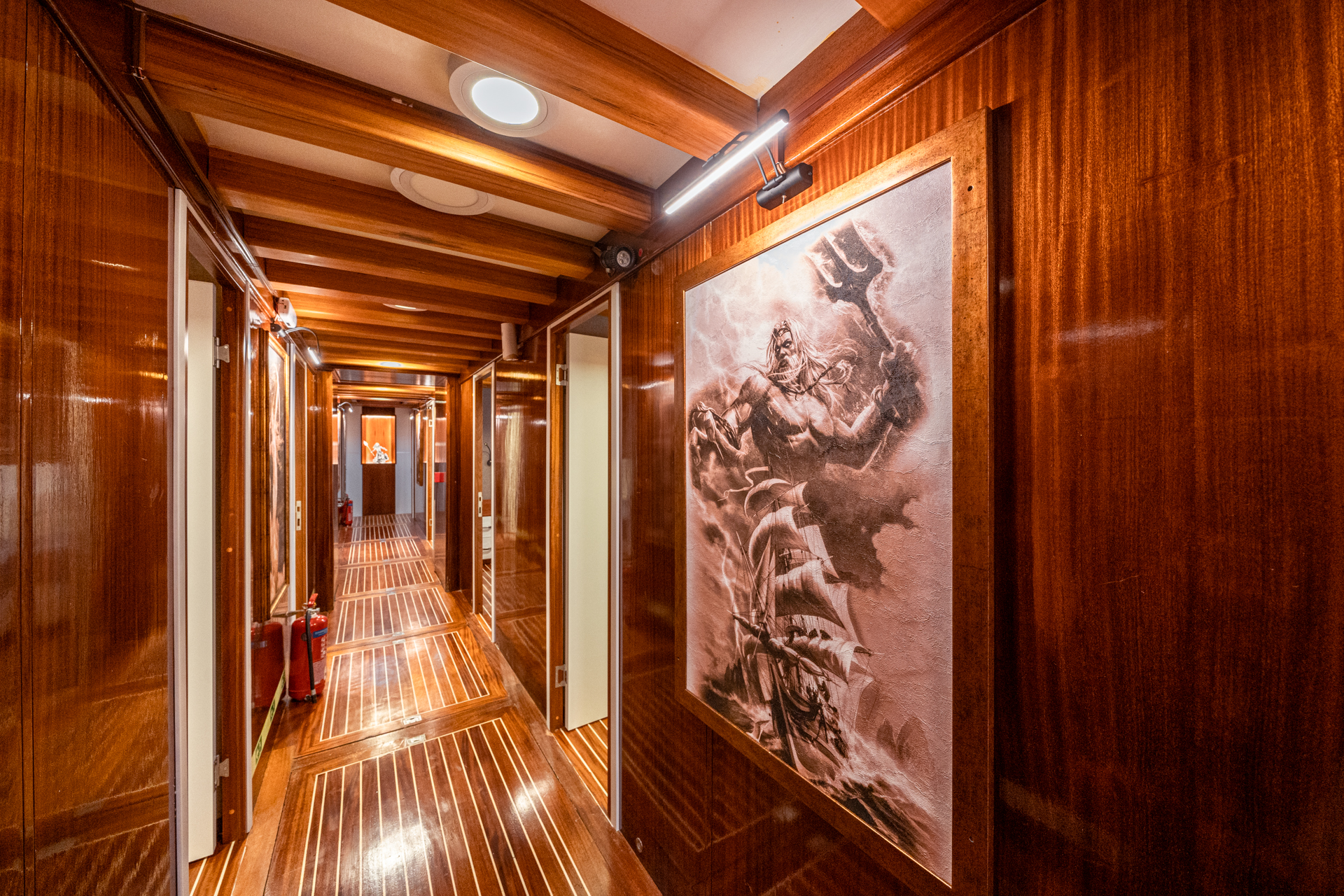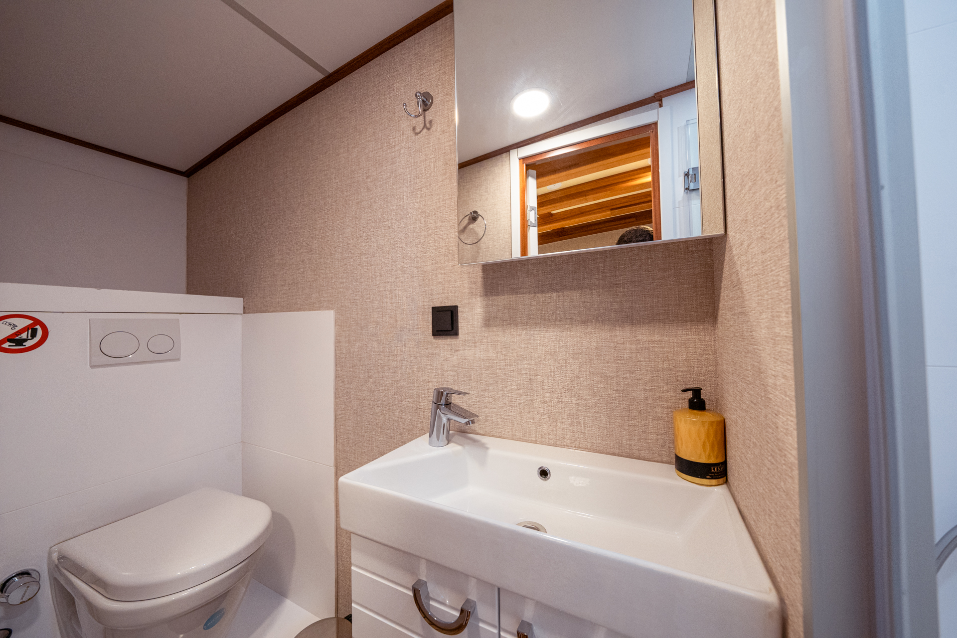 | 16 Kabinen, bis zu 36 Gäste; 4 Master, 8 Twin und 4 Quad-Bett-Kabinen, Salon und alle Kabinen mit Klimaanlage, Fernseher in allen Kabinen, Duschkabine und Haushaltstoiletten in allen Kabinen, separate Mannschaftskabinen |