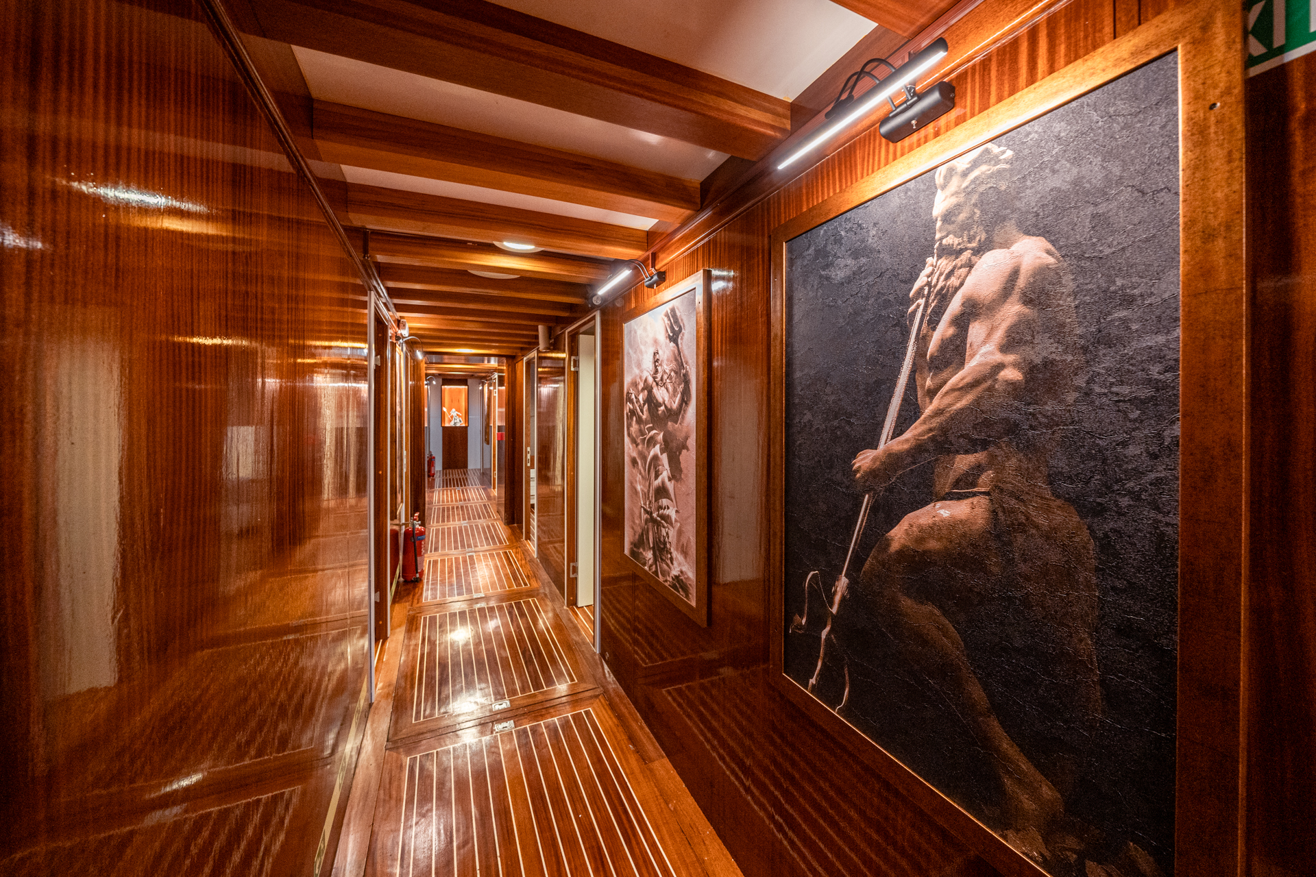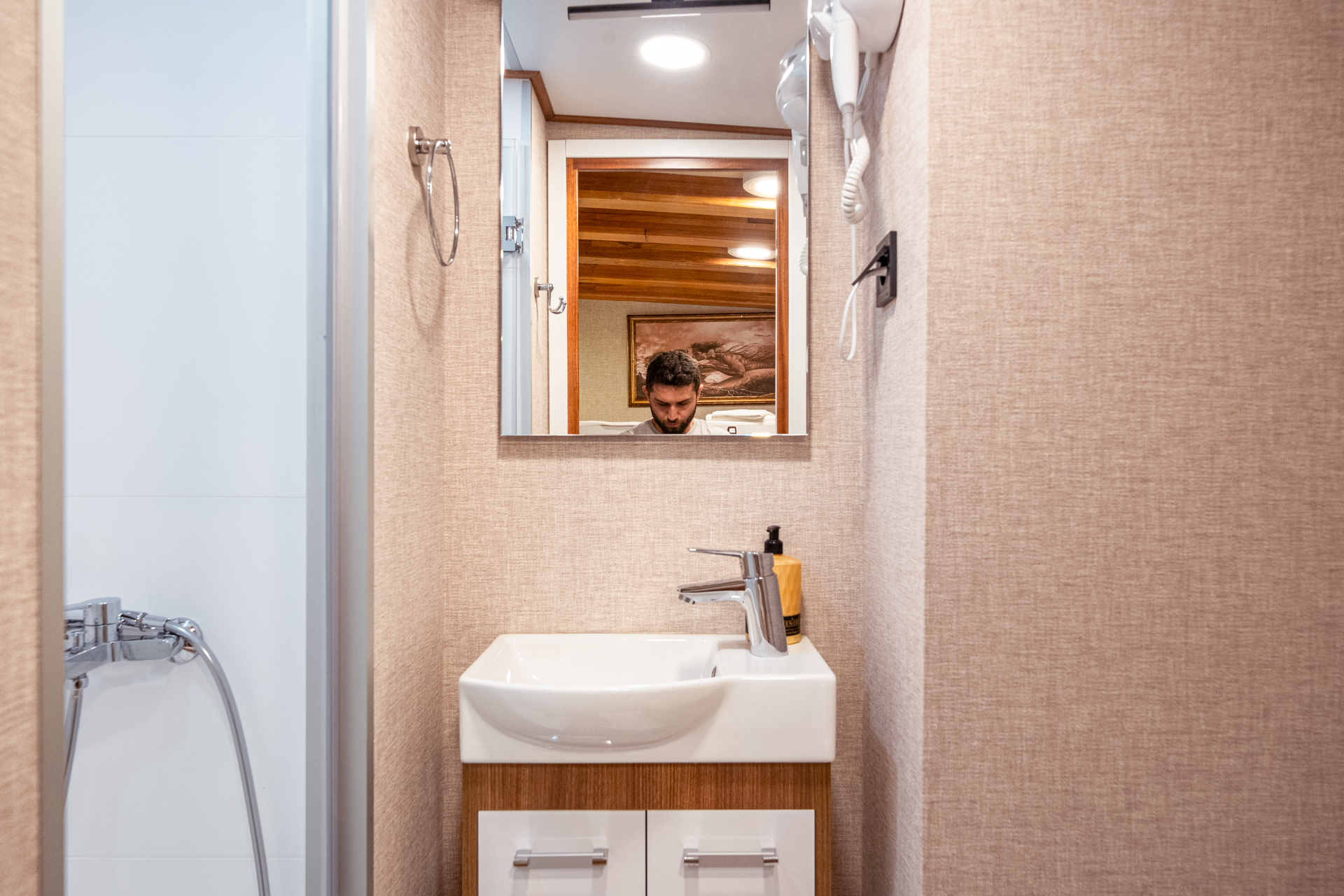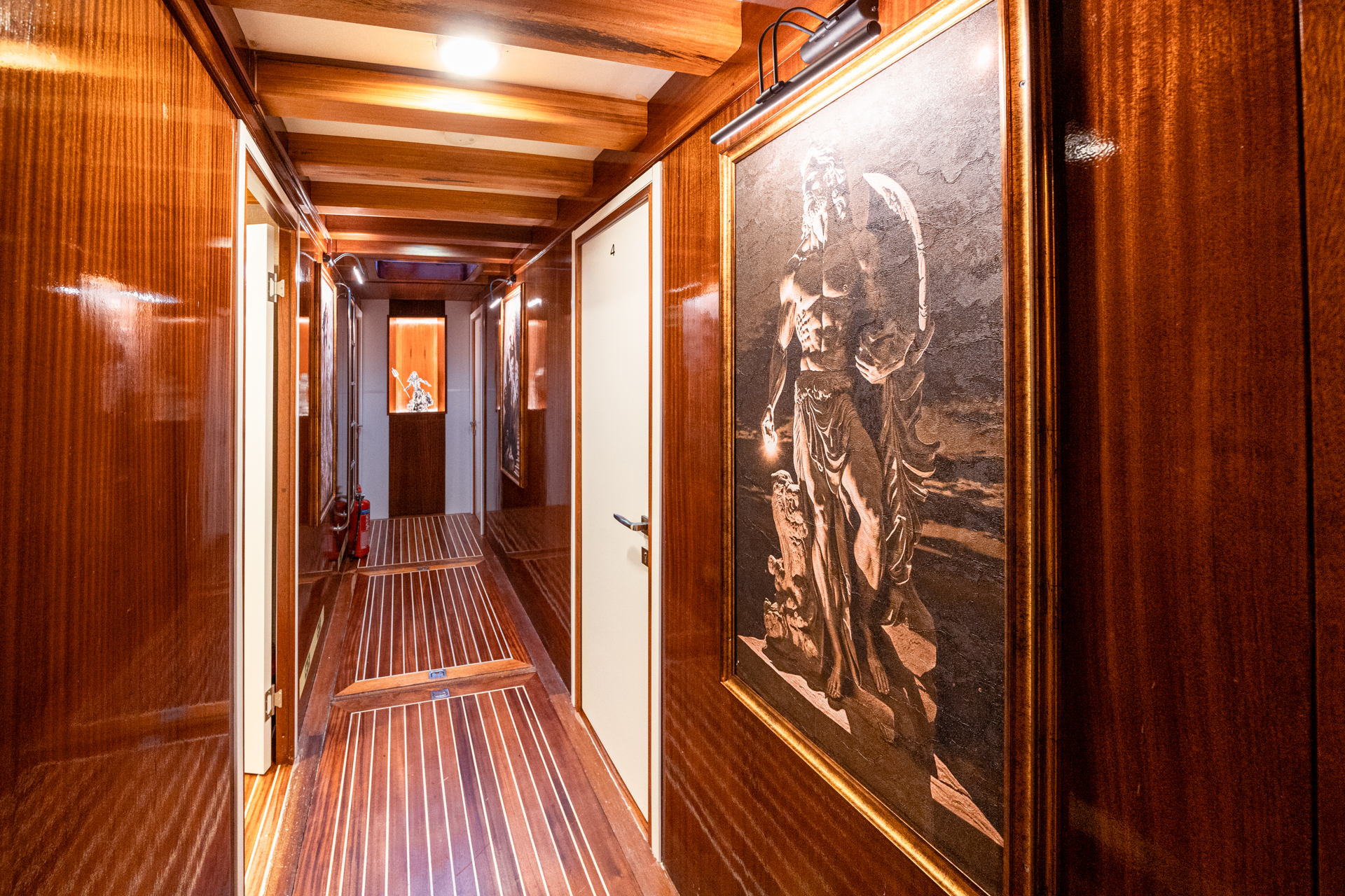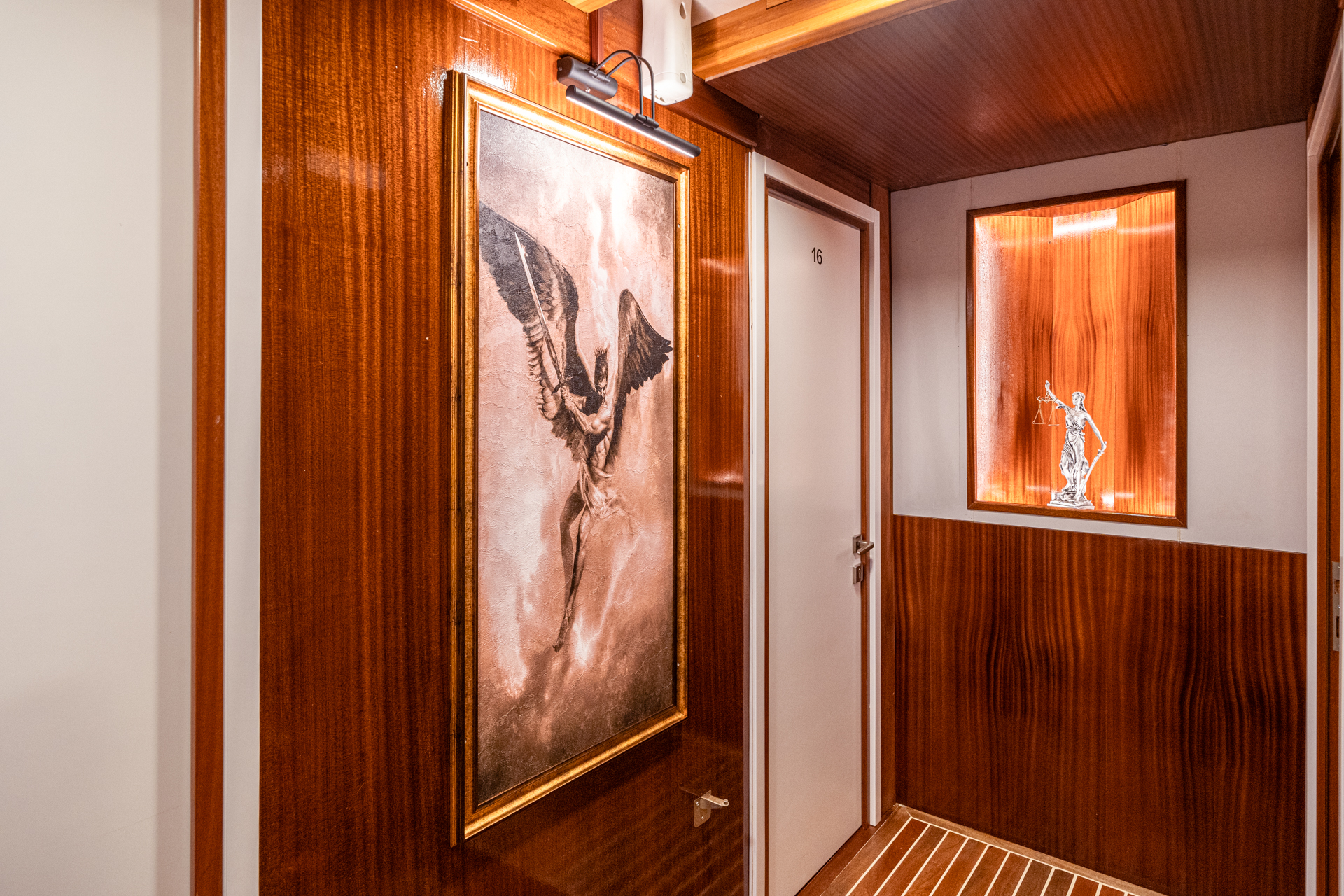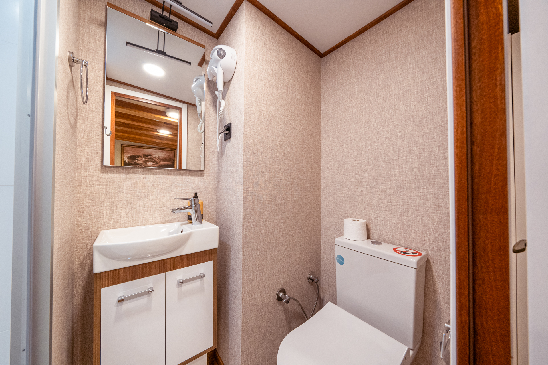 | 16 Kabinen, bis zu 36 Gäste; 4 Master, 8 Twin und 4 Quad-Bett-Kabinen, Salon und alle Kabinen mit Klimaanlage, Fernseher in allen Kabinen, Duschkabine und Haushaltstoiletten in allen Kabinen, separate Mannschaftskabinen |