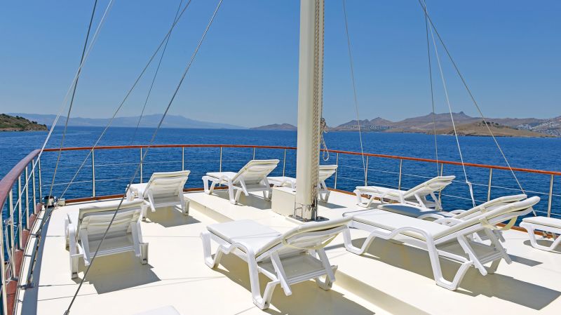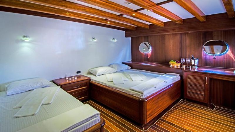 Die Gulet VIP Love Boat ist eine prächtige Yacht, die speziell für ihre Gäste entworfen wurde. Sie verfügt über 16 Luxuskabinen, die bis zu 36 Personen in türkischen Gewässern und im Ausland beherbergen können. Ihre 10 Kabinen befinden sich auf dem Unterdeck, 6 ihrer Kabinen befinden sich auf dem Vordeck mit Meerblick. Die Zimmer werden zwischen dem Ober- und dem Unterdeck geteilt, sodass die Zimmer geräumig und komfortabel sind. Mit 8 freundlichen und gastfreundlichen Besatzungsmitgliedern an Bord erleben Sie eine unvergessliche Kreuzfahrt im klaren Blau der Türkei oder auf den griechischen Inseln. Sie bietet Ihnen außerdem eine große Terrasse mit Esstisch, Bar, Schlafzimmer im zweiten Stock und Ruhebereich auf der Terrasse. Sie können Wassersport treiben, schnorcheln, angeln oder lesen. Love Boat ist die größte und neueste Yacht für große Gruppen. Die blaue Familienyacht und die VIP-Geschäftstreffen-Resortyacht Gulet Love Boat erwarten Sie für Ihren privaten Yachtcharterurlaub in der Türkei und auf den griechischen Inseln. |