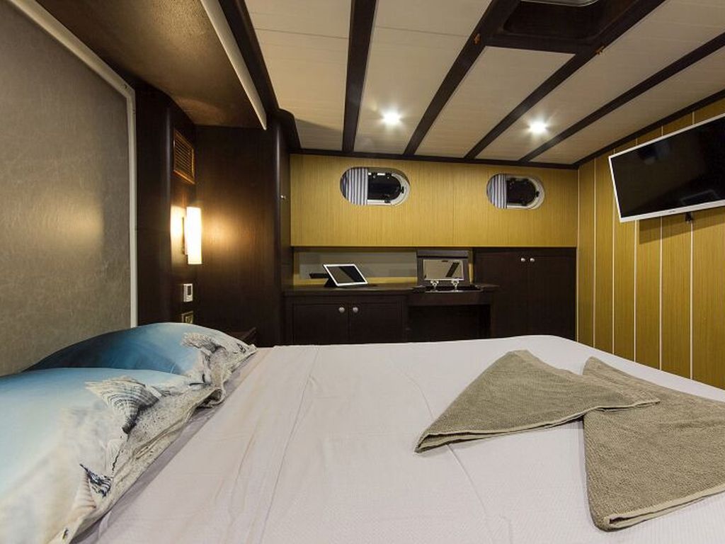 Cenkaya ist eines unserer 2-Kabinen-Boote mit einer Kapazität von 4 Personen, ideal für kleine Gruppen und Familien, und wird am meisten bei unseren Touren nach Bodrum, Gökova, Marmaris, Göcek und Fethiye bevorzugt. Unser Gulet Cenkaya ist speziell dafür konzipiert, seinen Gästen eine unvergessliche Blaue Kreuzfahrt mit Abfahrt von Bodrum, Göcek, Fethiye und Marmaris in einem privaten Bootsverleih zu bieten. Unser 18,50 m langes Gulet wurde 2016 gebaut. In diesem 2-Kabinen-Gulet können Sie den ganzen Komfort Ihres Zuhauses auf dem Meer genießen. Die Cenkaya-Gulet bietet Unterkunft für insgesamt 4 Gäste mit insgesamt 2 Doppelkabinen.