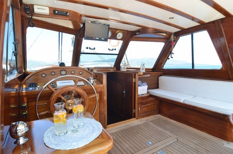 | Komfort/Freizeit der Gulet Cosh Großzügiger Sonnendeckbereich mit Sonnenmatratzen und Kissen, Sonnensegel, gepolstertes Achterdeck mit großem Tisch, Liegestühle, geräumiger Salon mit Bar und Esstisch, Musikanlage, Fernseher, Internet, Beiboot mit 15 PS Außenbordmotor, Schnorchel und Angelausrüstung. Komplette Navigationsausrüstung, Mobiltelefon, Generator 10 kWa Vetus, 24 + 220 V, Rettungsfloß, Schwimmwesten, Feuerlöscher, voll ausgestattete Kombüse, Tiefkühltruhe, Kühlboxen, Eismaschine. |