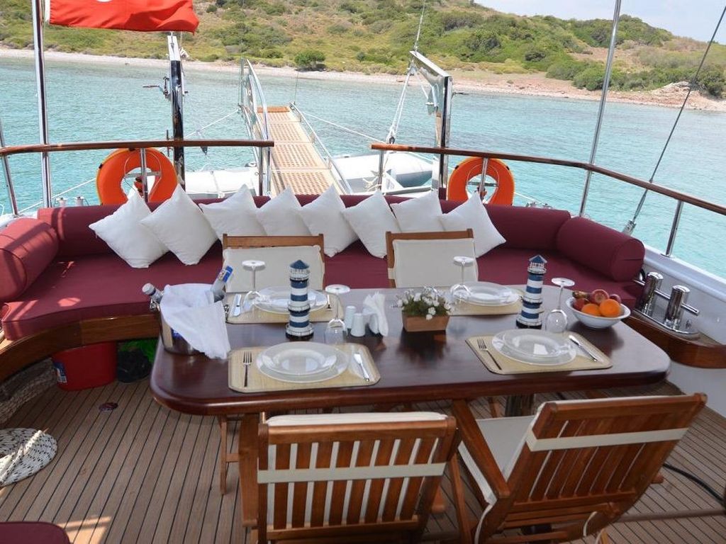 Unser Boot, das unter sorgfältiger Berücksichtigung aller Bedürfnisse unserer Gäste der Blauen Reise vorbereitet wurde, wurde 2012 gebaut und hat eine Länge von 15 m und eine Breite von 5 m. Während Sie Ihre blaue Reise in den Innenräumen und auf dem Deck unserer Gulet genießen, wird Ihr Vergnügen durch Mahlzeiten abgerundet, die von unserem erfahrenen Personal in unserer Küche zubereitet werden. Unser erfahrenes Personal, bestehend aus einem Kapitän und einem Koch, bereitet während Ihrer blauen Kreuzfahrt ägäische und mediterrane Gerichte für Sie zu, versorgt Sie mit Getränken, Service, täglicher Reinigung und ist jederzeit an Ihrem Boot für Sie da, wenn Sie es brauchen.