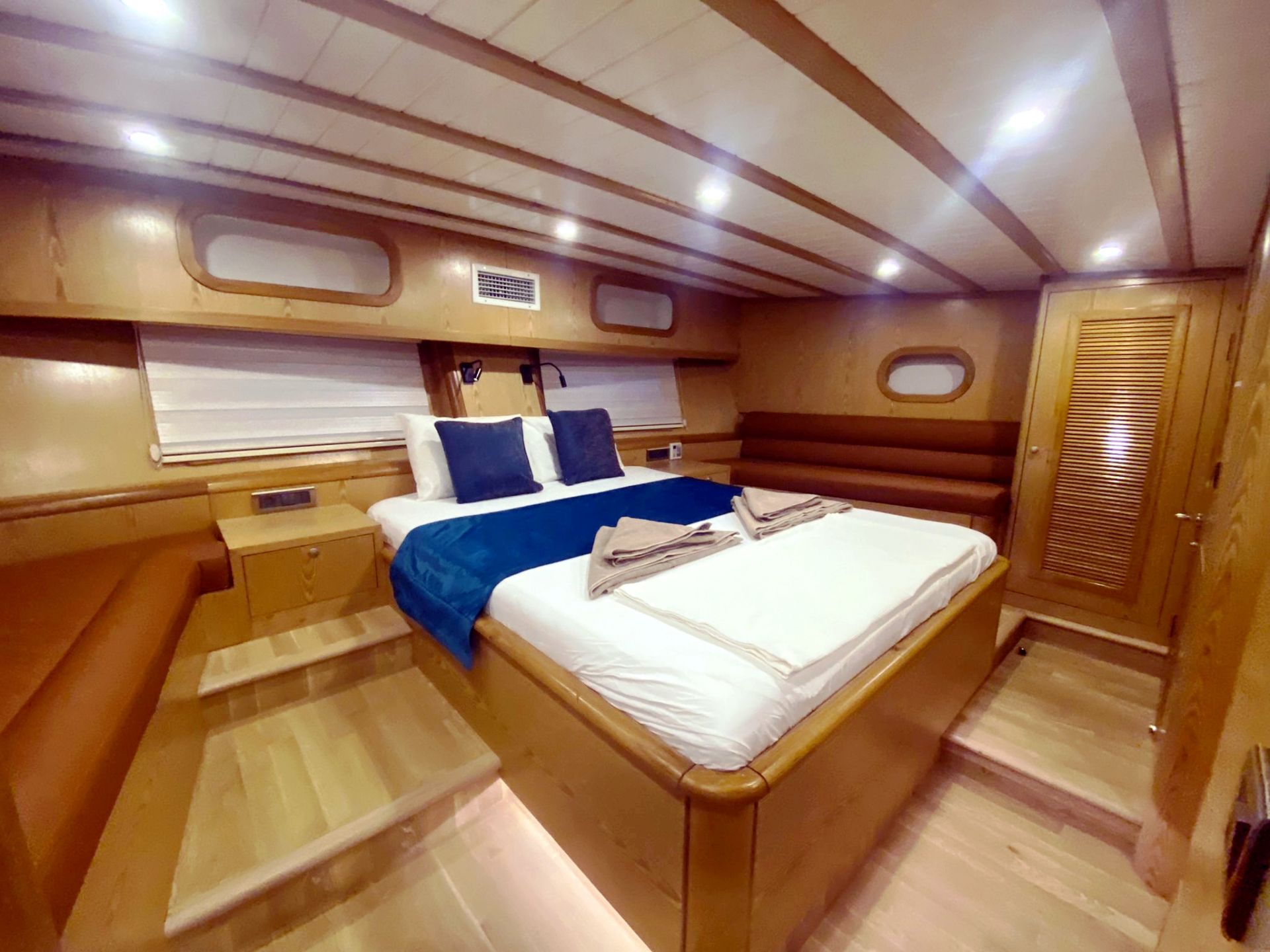 Das Armonica-Gulet bietet Unterkunft für insgesamt 6 Gäste mit insgesamt 3 Doppelkabinen. Die klimatisierten Kabinen unserer Gulets verfügen über komfortable Duschen und WCs. Die Innen- und Außenbereiche, der Salon, das Deck und die Küche unserer Gulets sind geschmackvoll mit hochwertigen Materialien eingerichtet.