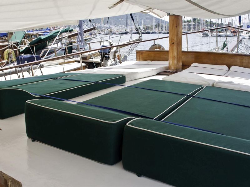 Um Ihre Zeit auf unserer Gulet angenehmer zu gestalten, gibt es einen Fernseher, einen DVD-Player, Kartenspiele und Backgammon. Für Ihre Zeit auf See verfügt unser Boot über Kanu-, Schnorchel- und Angelausrüstung. Unser Kapitän hilft Ihnen bei Ihren Wasserski-, Jetski-, Windsurf-, Tauch- oder Tagestouranfragen. Wir laden Sie zu einer blauen Reise mit unserer Gulet ein, um jeden Farbton und jede Schönheit des Blaus an der Ägäis- und Mittelmeerküste zu entdecken.