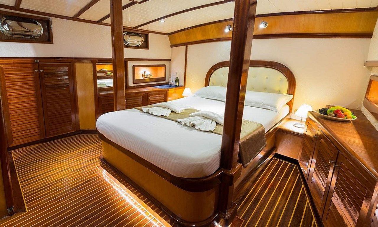 | Bis zu 6 Gästekapazität; 1 Masterkabine, 3 Doppelkabinen, Klimaanlage in allen Kabinen, Duschkabine und Toiletten im Haushaltsstil in allen Kabinen, separate Mannschaftskabinen. |