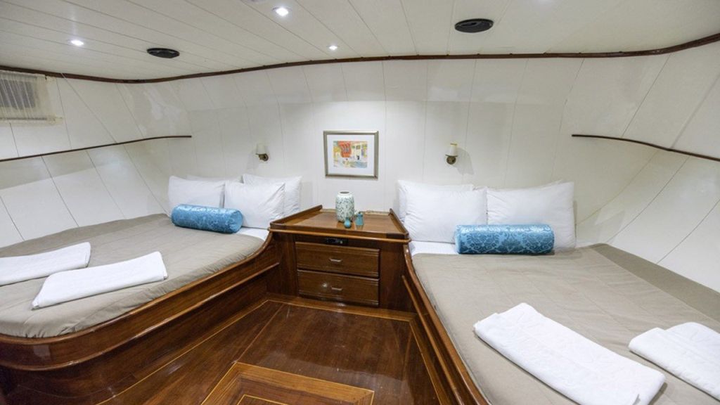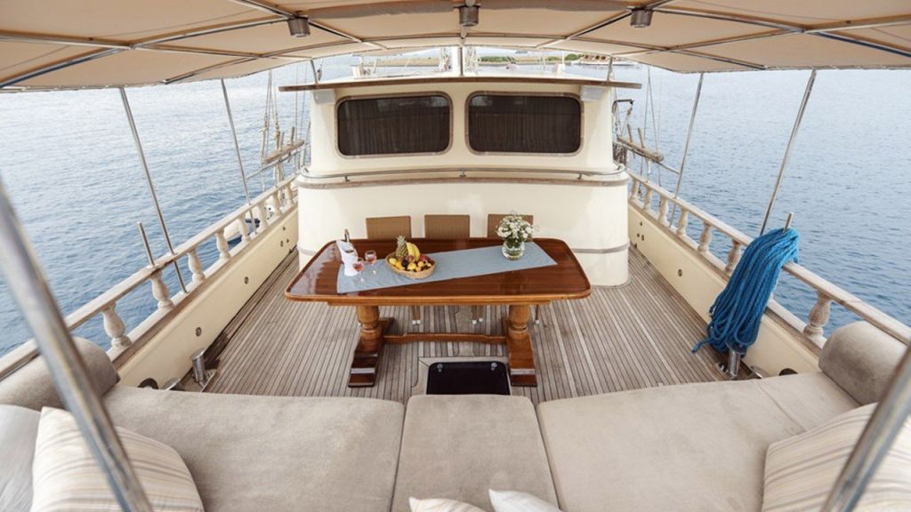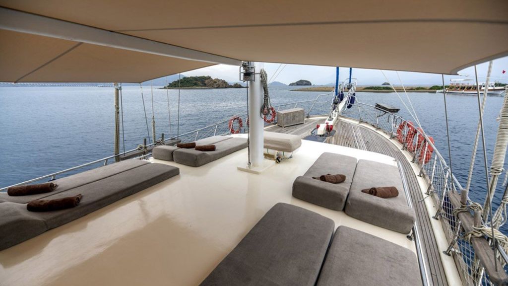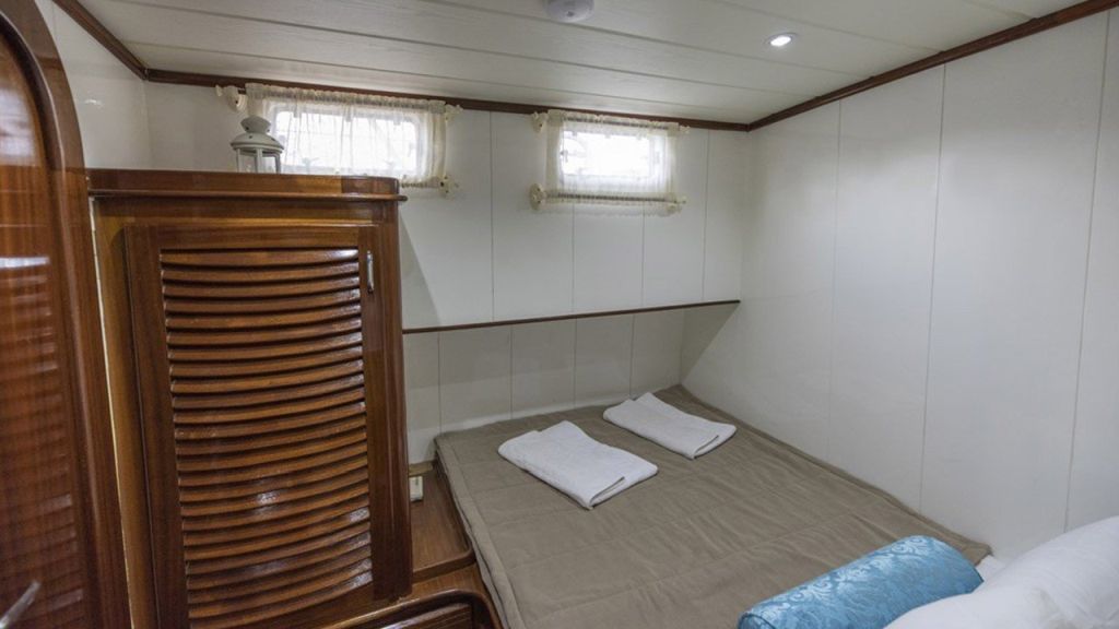Die Faralya-Gulet bietet mit insgesamt 3 Doppelkabinen Platz für insgesamt 6 Gäste. Die klimatisierten Kabinen unserer Gulets verfügen über komfortable Dusch- und WC-Einrichtungen. Die Innen- und Außenbereiche, die Lounge, das Deck und die Küche unserer Faralya-Gulet sind geschmackvoll mit hochwertigen Materialien eingerichtet.