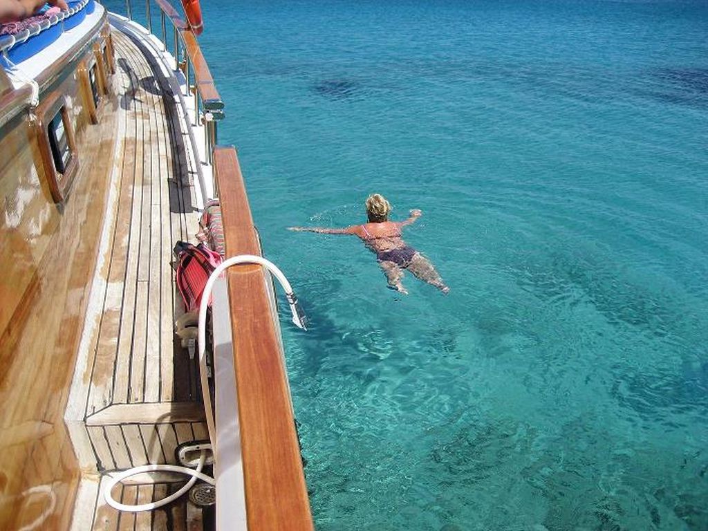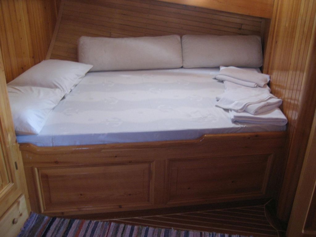 Nagehan ist eines unserer 3-Kabinen-Boote mit einer Kapazität von 6 Personen, ideal für kleine Gruppen und Familien, was bei unseren Touren nach Bodrum, Gökova, Marmaris, Göcek und Fethiye am beliebtesten ist. Unser Gulet Nagehan ist speziell dafür konzipiert, seinen Gästen eine unvergessliche Blaue Kreuzfahrt mit Abfahrt von Bodrum, Göcek, Fethiye und Marmaris in einem privaten Bootsverleih zu bieten. Unser 15,00 m langes Gulet wurde 2007 gebaut. In diesem 3-Kabinen-Gulet können Sie den ganzen Komfort Ihres Zuhauses auf dem Meer erleben. Das Nagehan-Gulet bietet Unterkunft für insgesamt 6 Gäste mit insgesamt 3 Doppelkabinen.