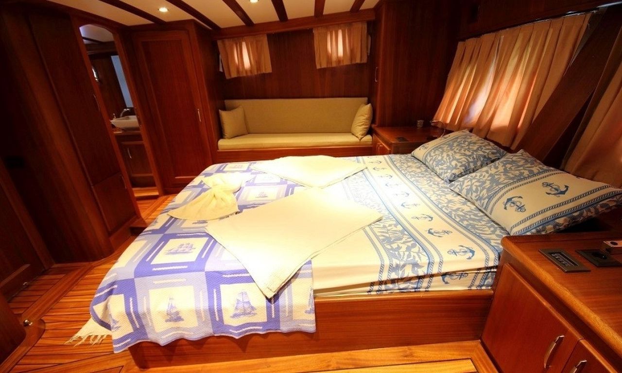 | Die Gulet Perfect Life ist eine 18 Meter lange traditionelle Holzyacht, gebaut 2013, und bietet Komfort und Stil für kleine Gruppen. Sie verfügt über drei Kabinen – eine Master-, eine Doppel- und eine Zweibettkabine – und kann bis zu vier Gäste beherbergen. Jede Kabine hat ein eigenes Bad und WC; Klimaanlage ist 12 Stunden pro Tag verfügbar. An Bord gibt es ein einladendes Achterdeck mit Sitzbereich und Esstisch, sowie einen gemütlichen Salon mit komplett ausgestatteter Küche. Die Gulet wird von einem 280 PS Iveco-Motor angetrieben und von einem 16 kVa Generator unterstützt, was eine reibungslose Fahrt entlang der Ägäis und Mittelmeerküste garantiert. Für Wassersport bietet die Perfect Life ein Beiboot mit 9,9 PS Außenbordmotor, ein Kanu, Schnorchel- und Angelausrüstung. Auf Wunsch können Jet Skis, Seabobs oder Paddleboards hinzugebucht werden. Sie segelt in Bodrum, Marmaris, Göcek und Fethiye und garantiert eine komfortable und authentische Blaue Reise durch die türkisfarbenen Buchten der Türkei. |