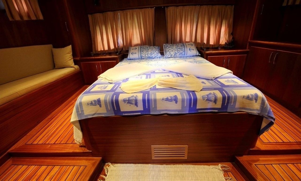 | Bis zu 6 Gästekapazität; 1 Masterkabine, 2 Doppelkabinen, Klimaanlage in allen Kabinen, Duschkabine und Toiletten im Haushaltsstil in allen Kabinen, separate Mannschaftskabinen. |