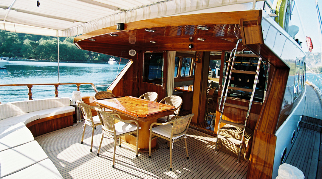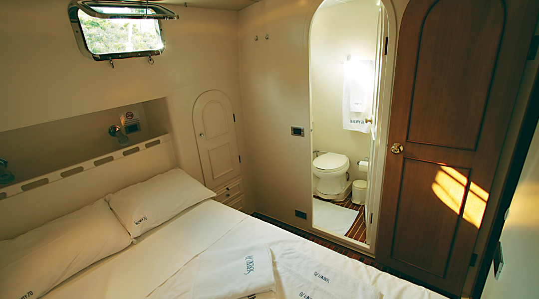 Die Serenity 70 Gulet bietet mit insgesamt 3 Doppelkabinen Platz für insgesamt 6 Gäste. Die klimatisierten Kabinen unserer Gulets verfügen über komfortable Dusch- und WC-Einrichtungen. Die Innen- und Außenbereiche, die Lounge, das Deck und die Küche unserer Gulets sind geschmackvoll mit hochwertigen Materialien eingerichtet.