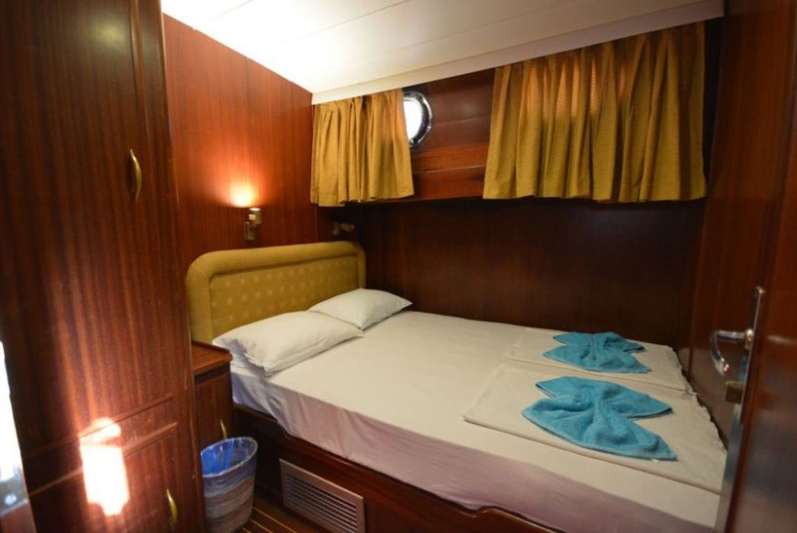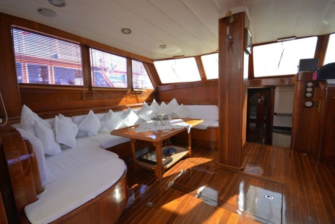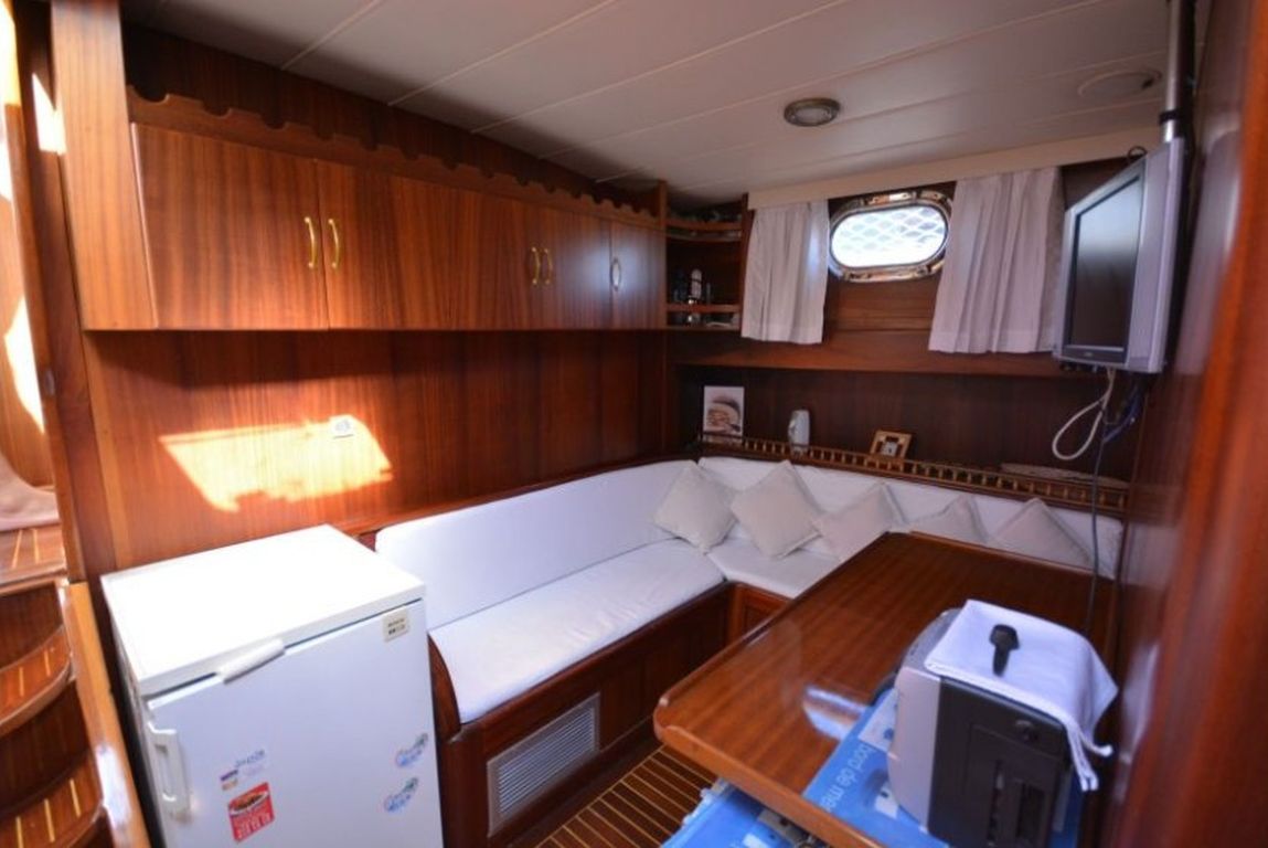 | Die Gulet Sofia ist eine 23 Meter lange traditionelle Holzyacht, die 1998 gebaut und 2012 geschmackvoll renoviert wurde. Das Schiff verfügt über eine Masterkabine und zwei Doppelkabinen, alle mit eigenem Bad und WC im Haushaltsstil. Sie bietet Platz für bis zu sechs Gäste und wird von einer zweiköpfigen Crew betreut – ideal für Familien oder kleine Gruppen. Der Salon ist mit einer traditionellen Bar, bequemen Sitzmöbeln und einem Esstisch ausgestattet. Die Küche ist voll ausgestattet und bietet täglich frisch zubereitete Mahlzeiten. Zur Unterhaltung stehen Musikanlage, Satelliten-TV, CD/DVD-Player und Internetzugang (in türkischen Gewässern) zur Verfügung. Das Deck bietet Sonnenliegen, Sonnenschirme und eine Deckdusche. Ein Serviceboot mit 9,9 PS Motor, Schnorchel- und Angelausrüstung sind ebenfalls vorhanden. Die Gulet Sofia bietet eine sichere, komfortable und unvergessliche Blaue Reise mit Navigationstechnik wie Radar, GPS, VHF und Satellitenkommunikation sowie Klimaanlage. Ob beim Erkunden versteckter Buchten oder beim Ankern vor lebhaften Küstenorten – Sofia vereint Tradition, Komfort und türkische Gastfreundschaft. |