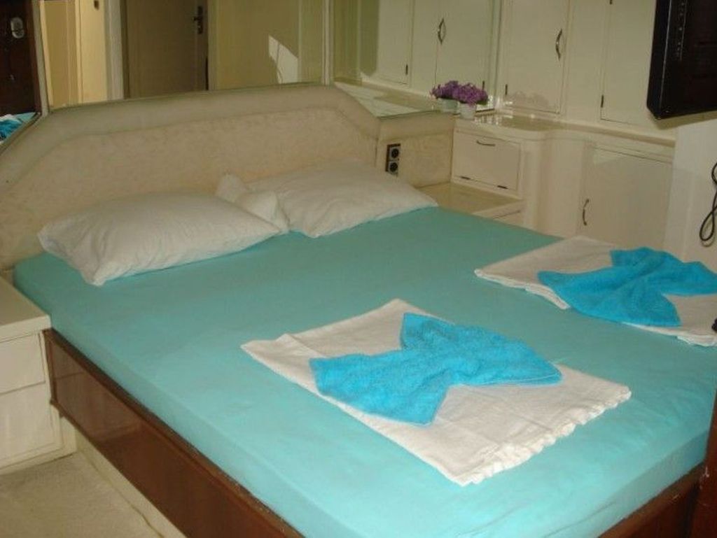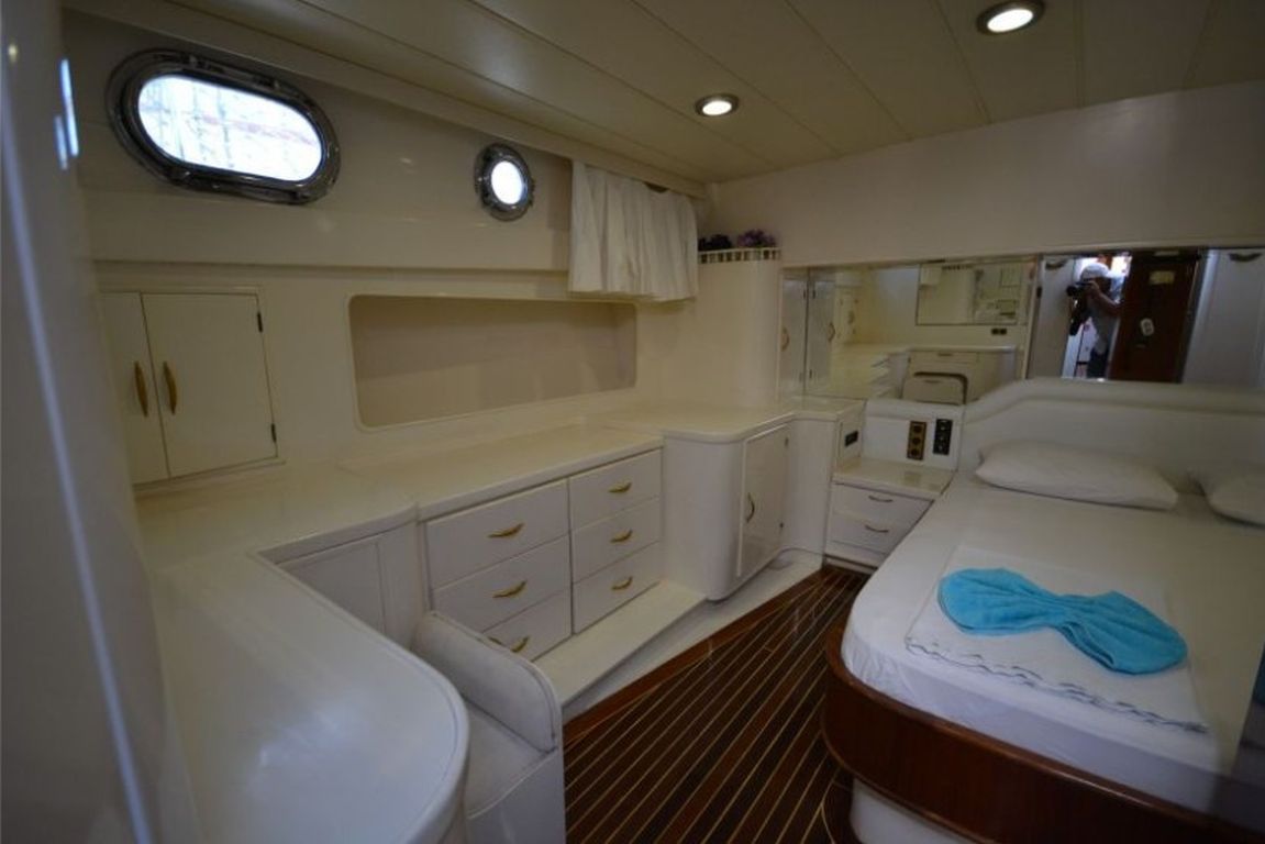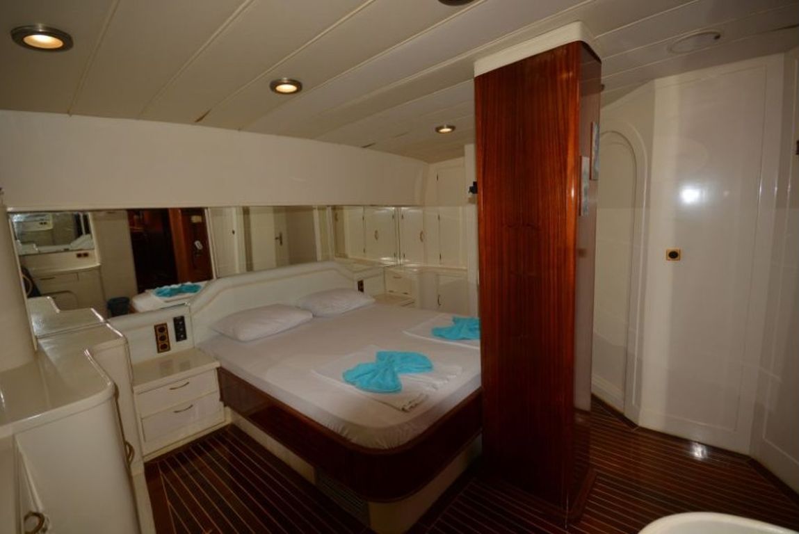 | Bis zu 6 Gästekapazität; 1 Masterkabine, 2 Doppelkabinen, Klimaanlage in allen Kabinen, Duschkabine und Toiletten im Haushaltsstil in allen Kabinen, separate Mannschaftskabinen. |