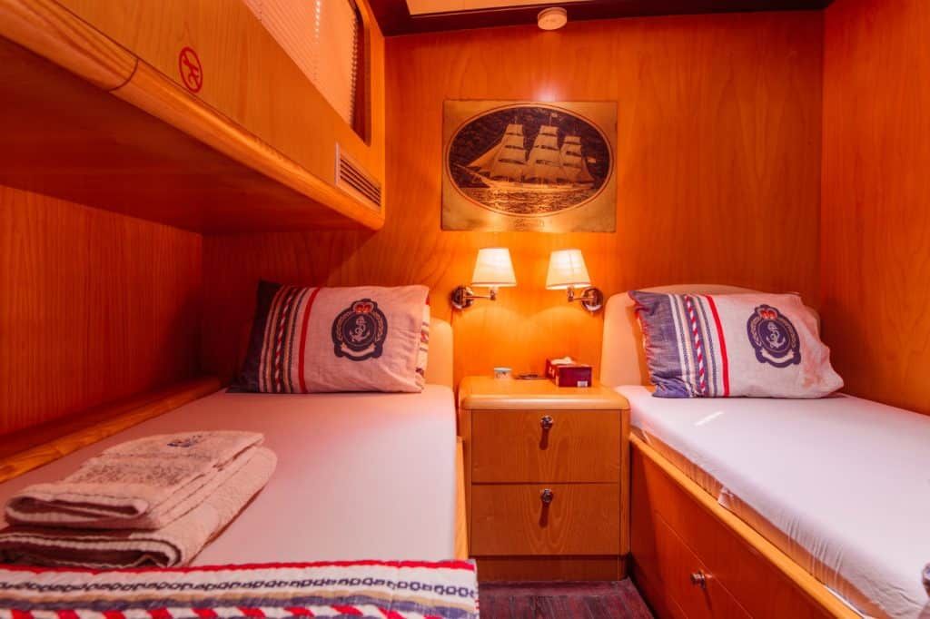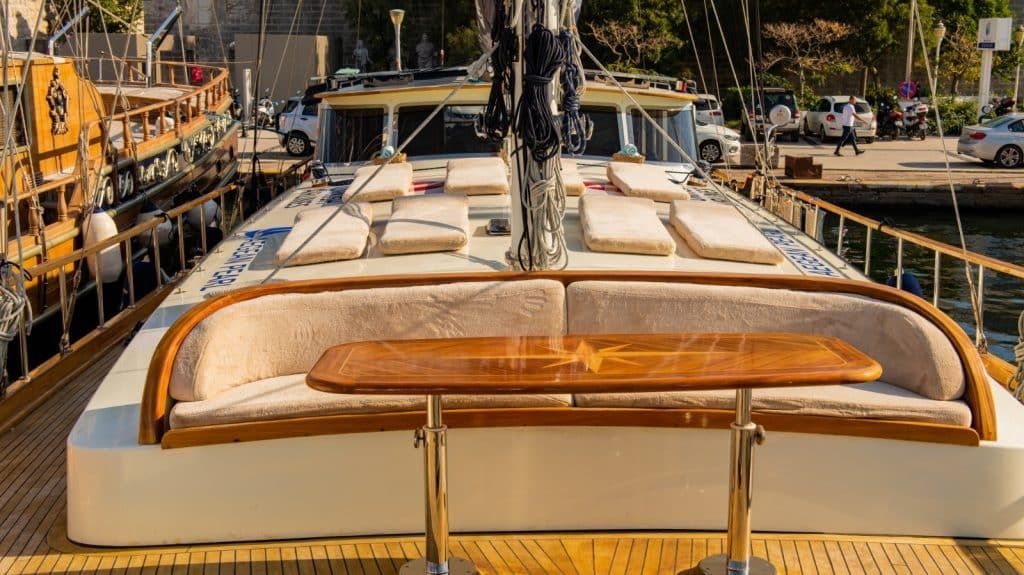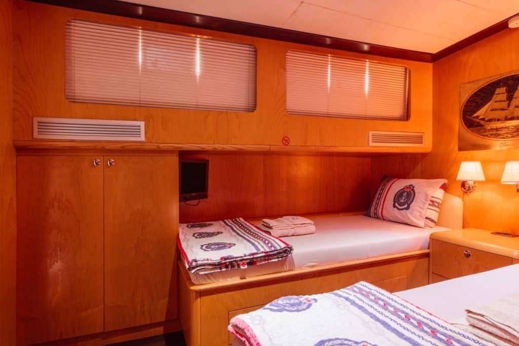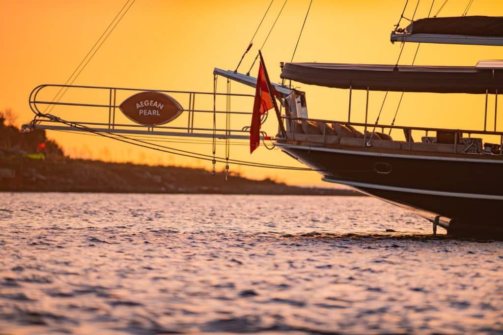 Unsere 26 m lange Gulet Aegean Pearl wurde 2011 gebaut. Unser Boot verfügt über 4 Doppelkabinen, jede stilvoller und komfortabler als die andere, mit eigener Dusche, WC und Klimaanlage. 3 Es gibt separate Wohnbereiche, eine voll ausgestattete Küche, Essbereiche im Innen und Außenbereich sowie Ruhebereiche für die Besatzung.