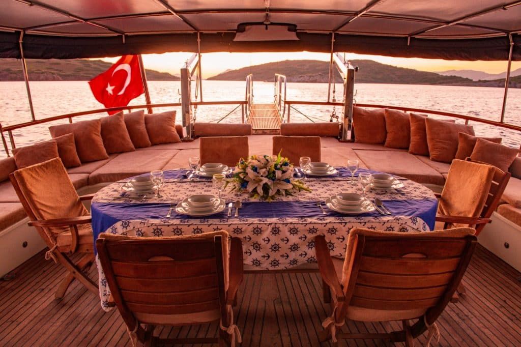 LCD-Fernseher, DVD-Player und Stereoanlage stehen unseren geschätzten Gästen der Blauen Reise in der Lounge unserer Gulet zur Verfügung. Wassersportarten wie Kanufahren, Tauchen und Windsurfen stehen unseren Gästen auf Wunsch optional zur Verfügung. Unser Boot, die Aegean Pearl, bietet unseren Passagieren, die die Blaue Reise in den unberührten Buchten der Türkei genießen möchten, auch Unterhaltung und die Möglichkeit, auf dem Boot zu entspannen. Das Gulet Aegean Pearl heißt unsere geschätzten Gäste willkommen, die eine wöchentliche Gulet-Miete in den Regionen Bodrum, Göcek, Fethiye, Marmaris oder Gökova in Erwägung ziehen.