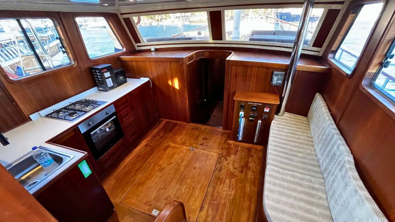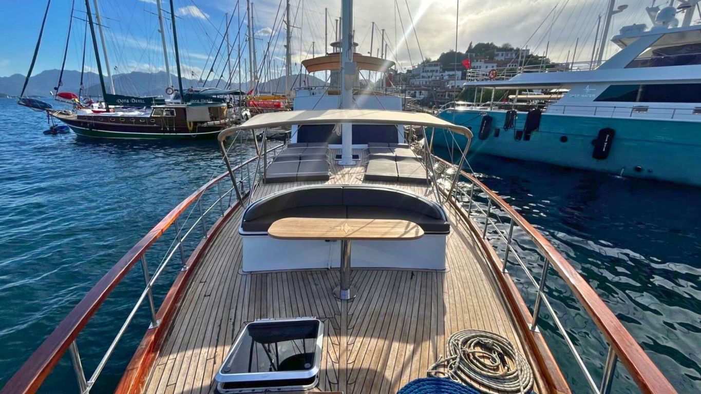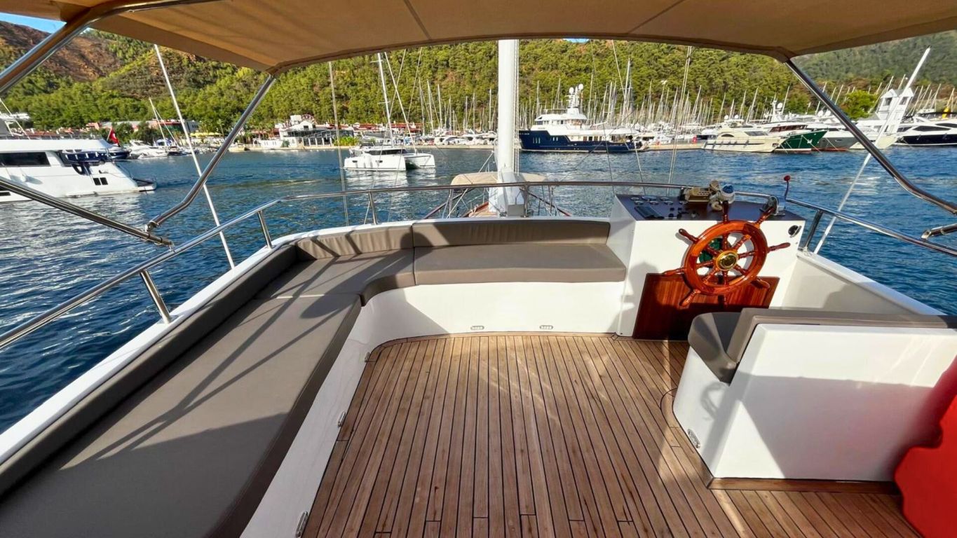 Das Schiff wird von einem 160 PS starken Motor angetrieben und von einem 17 kVA Generator unterstützt, was eine ruhige und komfortable Fahrt entlang der Ägäis- und Mittelmeerküste ermöglicht. Mit 5.000 Litern Frischwasserkapazität, Satellitenantenne, Internet in türkischen Gewässern und Unterwasserbeleuchtung bietet sie Komfort und Funktionalität gleichermaßen. Die Gulet Ahmet Erturk operiert von Marmaris aus und ist die ideale Wahl für Familien oder Freundesgruppen, die ein komfortables und authentisches Gulet-Erlebnis mit modernem Komfort, persönlichem Service und dem Charme traditioneller türkischer Segelkunst suchen.