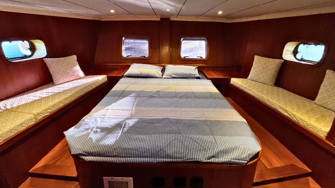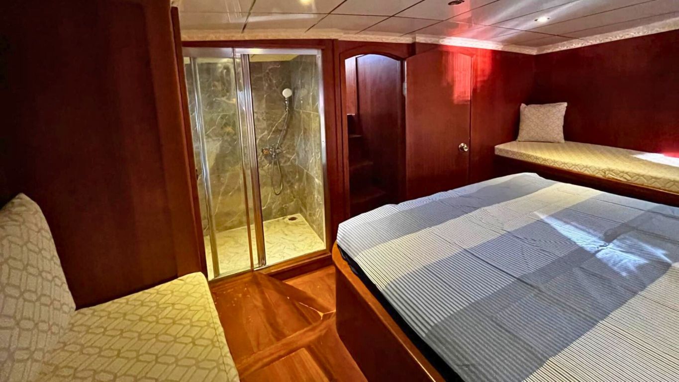 Der geschmackvoll eingerichtete Salon bietet einen Esstisch, eine Sitzecke, einen LCD-Fernseher, einen DVD-Player und eine Musikanlage. Alle Kabinen sind mit Haartrockner, Handtüchern und allen notwendigen Annehmlichkeiten für einen komfortablen Aufenthalt ausgestattet. Die Klimaanlage steht Ihnen vier Stunden täglich zur Verfügung, bei Bedarf auch nachts.