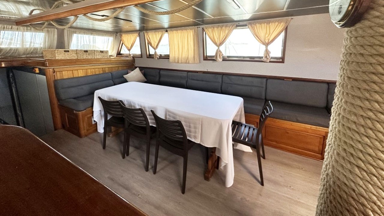 Das Schiff wird von einem 360-PS-Motor angetrieben, der von einem 35-kVA-Generator unterstützt wird, und verfügt über ein komplettes elektrisches System (12 V, 24 V, 220 V). Die Reisegeschwindigkeit beträgt ca. 8 Knoten. Eine Klimaanlage sorgt für angenehme Temperaturen.