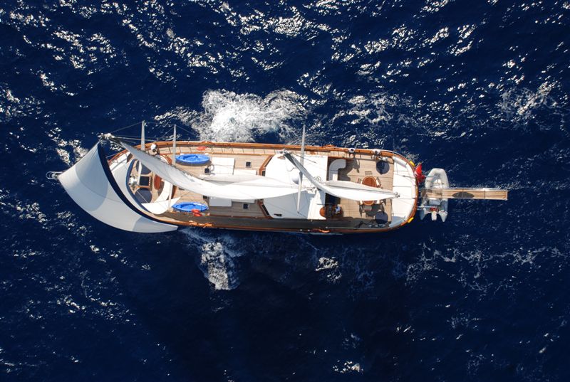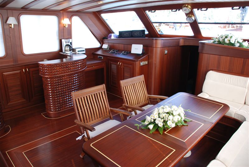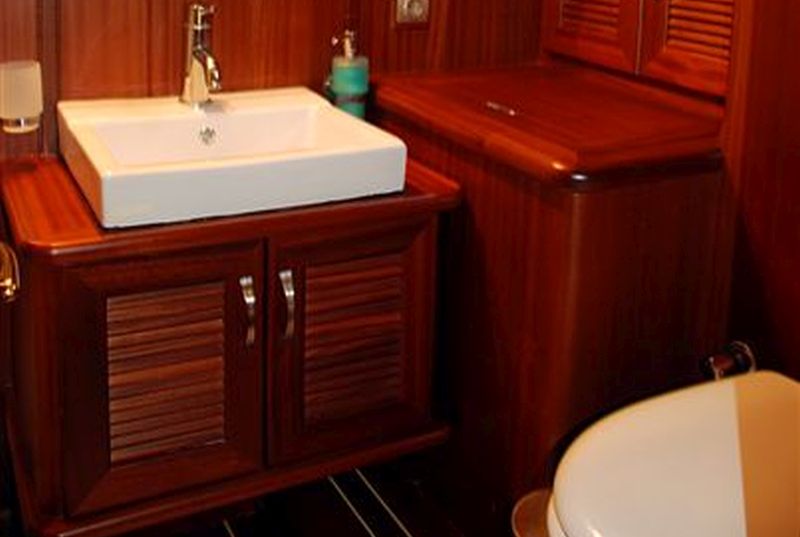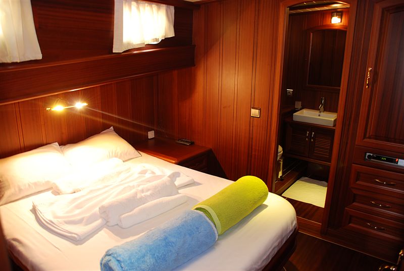 Bis zu 8 Gäste; 4 Suiten bestehend aus: 2 luxuriösen Doppelkabinen mit Kingsize-Betten. 2 Zweibettkabinen mit umbaubaren Betten zu Kingsize-Betten. Alle Kabinen haben ein eigenes Badezimmer. Individuell ferngesteuerte Klimaanlage (warm/kalt), Push-Flush-Toiletten, Haartrockner, Minibar, Feuerlöscher und Rauchmelder. Klimatisierter Innensalon, geräumiges Sonnendeck mit Sitzbereich vorne. Separate Mannschaftsquartiere. |