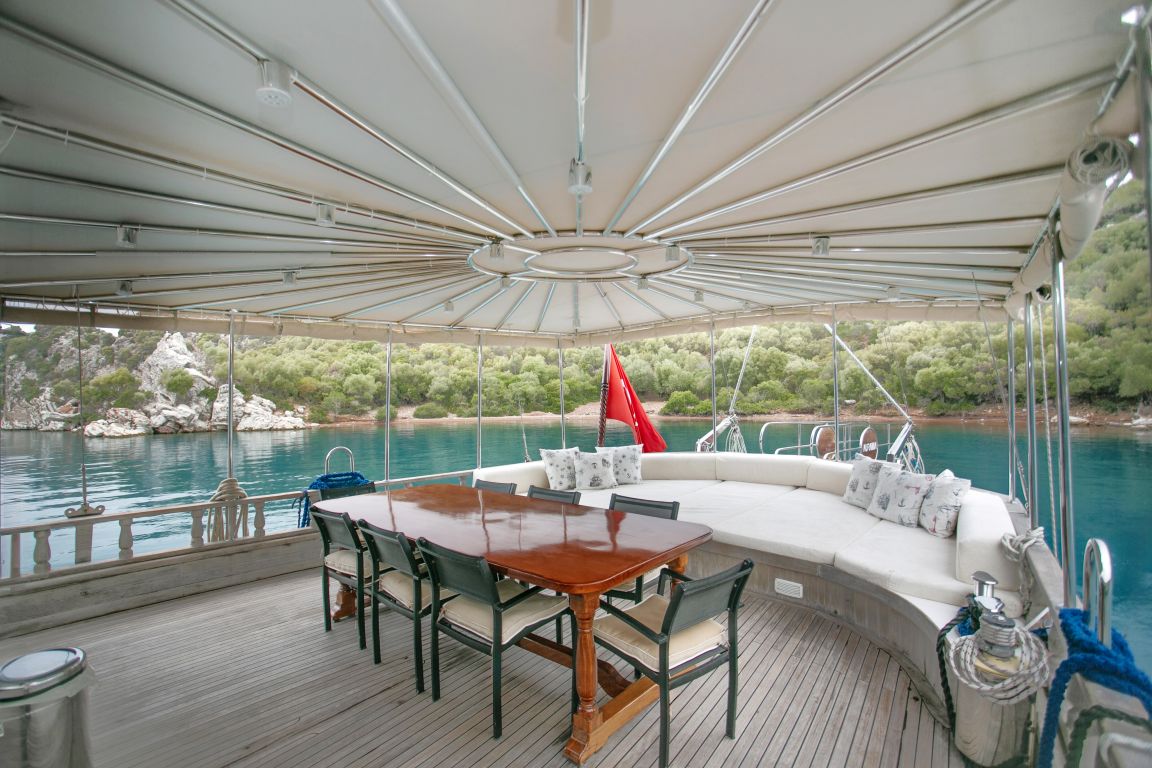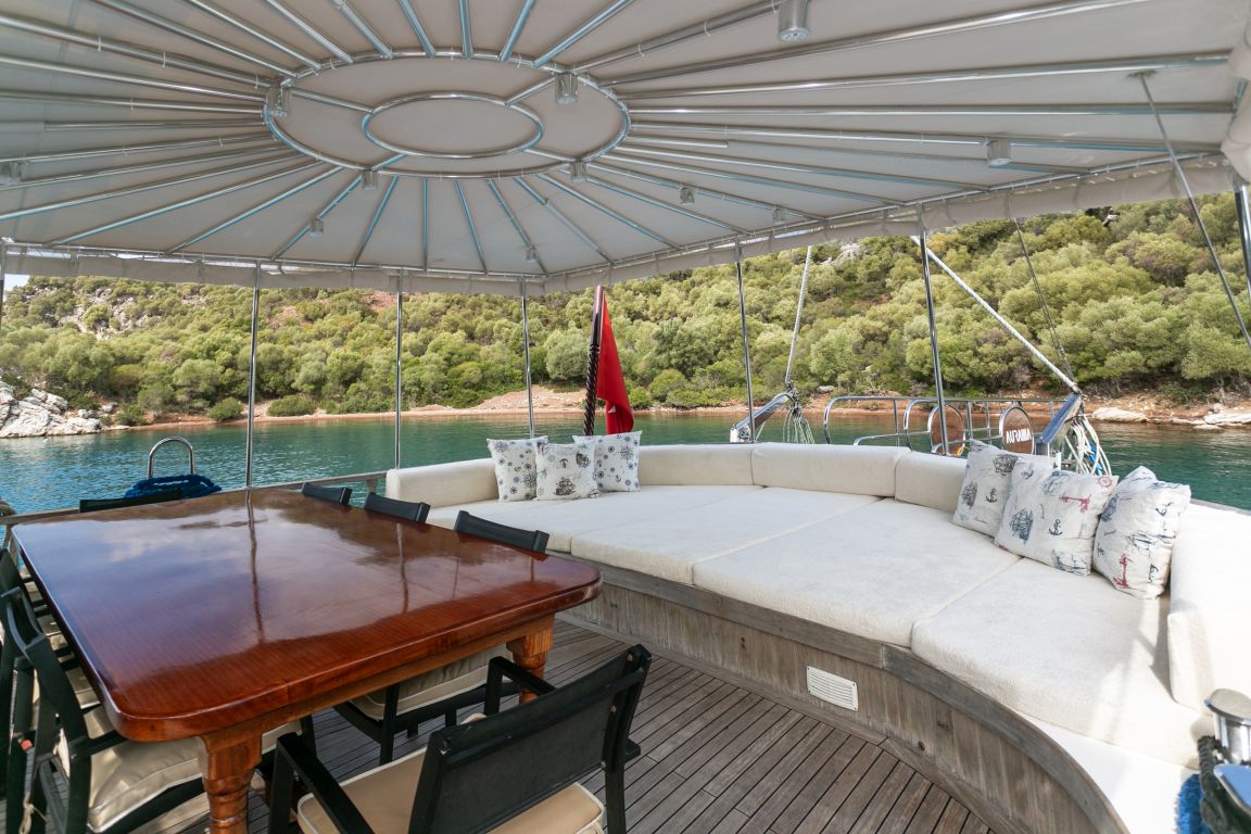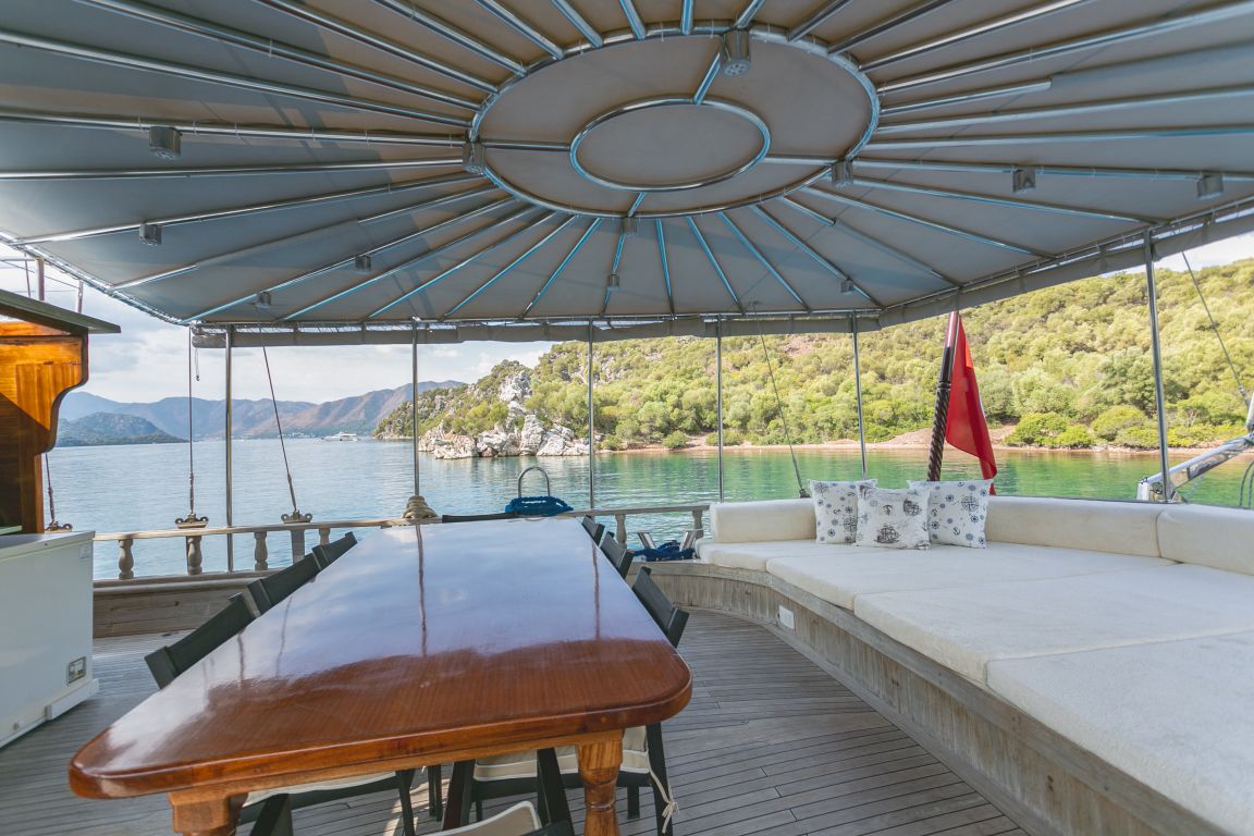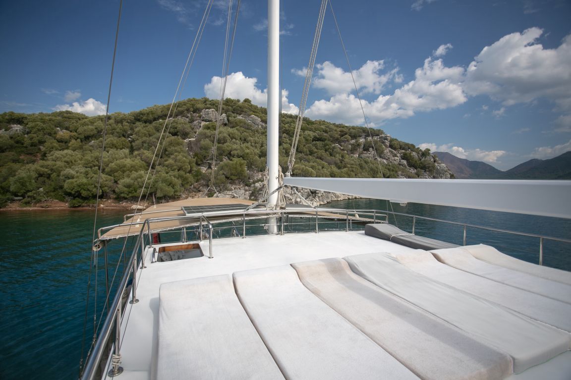 Dieses wunderbare 22 Meter lange Boutique-Gulet bietet einzigartige Blaue-Kreuzfahrten für 8 geschätzte Gäste. Sie könnte die ideale Wahl sein, insbesondere für einzelne Familiengruppen oder 4 Paare. Wasserski, Wakeboard, Ringo, Paddleboard und Kanu sind auf dem Board verfügbar. Darüber hinaus bietet Ihnen der Panorama-Flybridge-Bereich Privatsphäre. Auf dem Auramia - Gulet stehen 2 Esstische und 4 Besatzungsmitglieder zur Verfügung. Basishafen: Marmaris, Türkei, Check-in 16:30 Uhr – Check-out 10:00 Uhr |