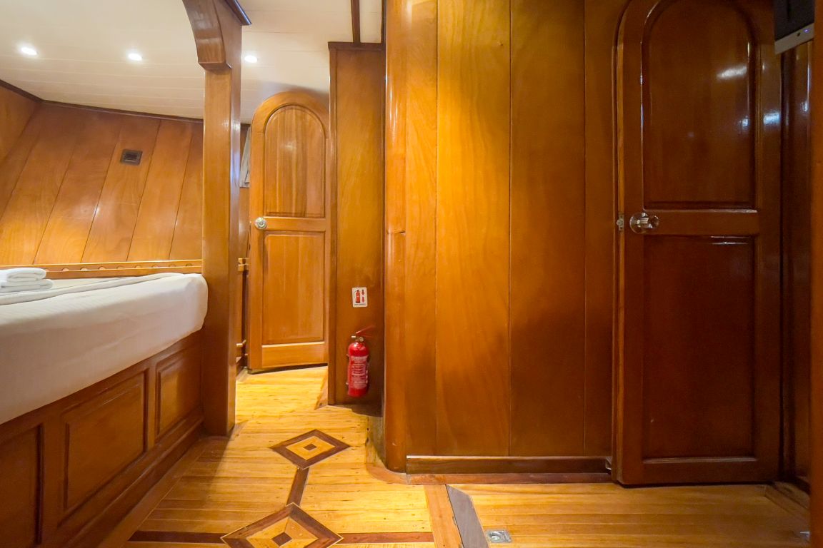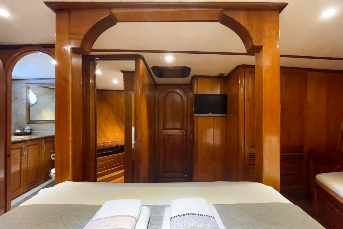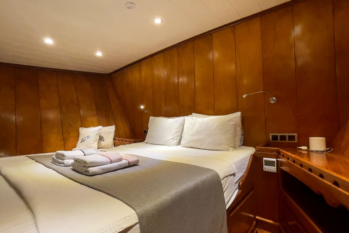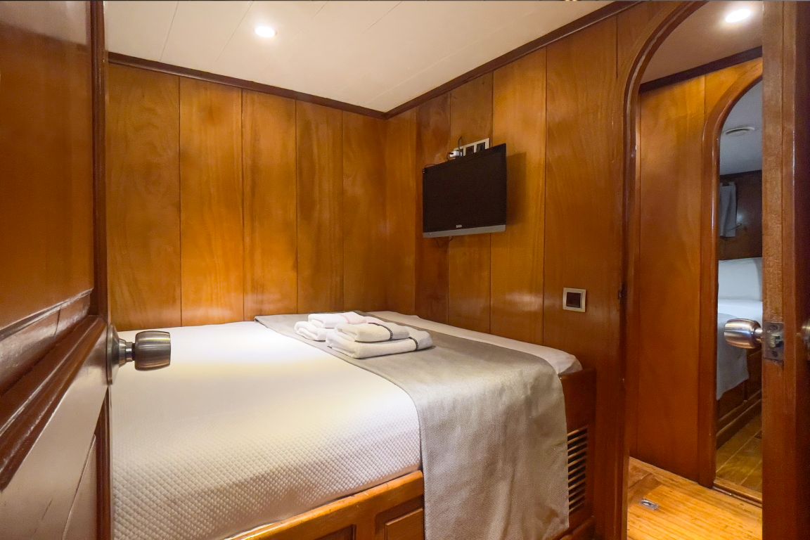| Bis zu 8 Gästekapazität; 2 Master, 2 Doppelkabinen, Klimaanlage, Duschkabine und Toiletten im Haushaltsstil in allen Kabinen, separate Mannschaftskabinen. |