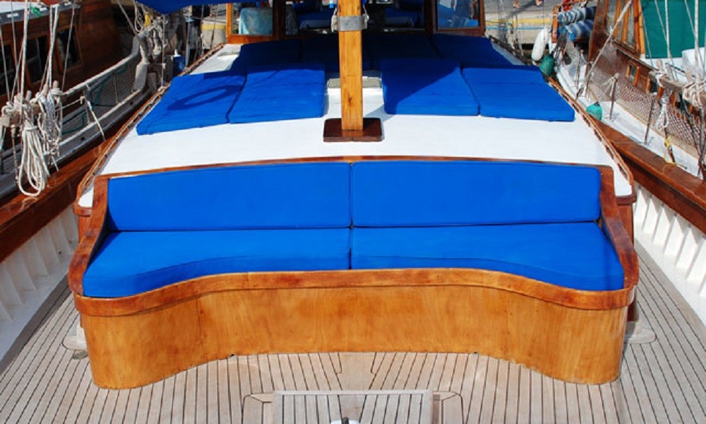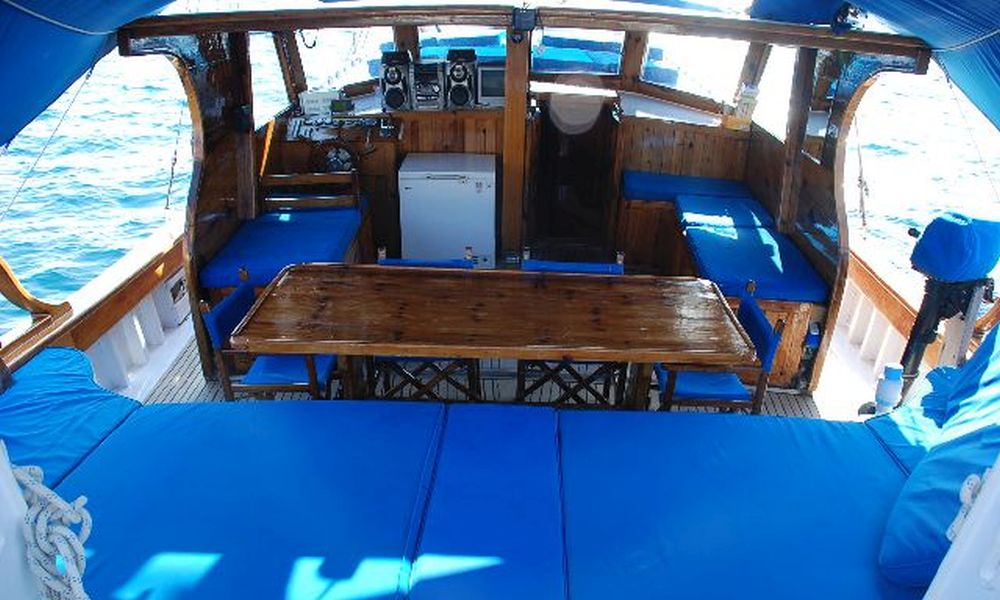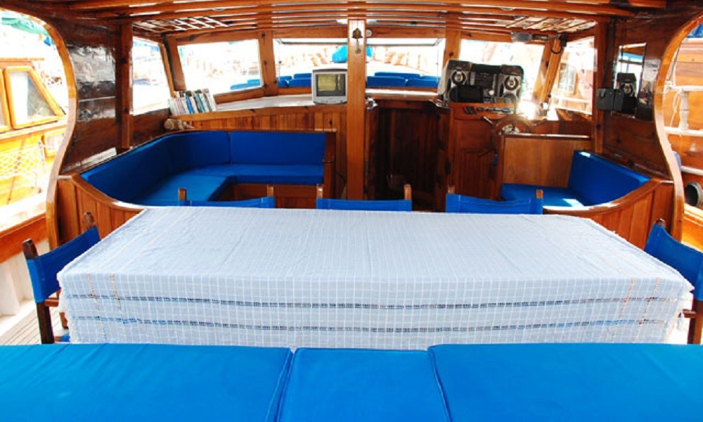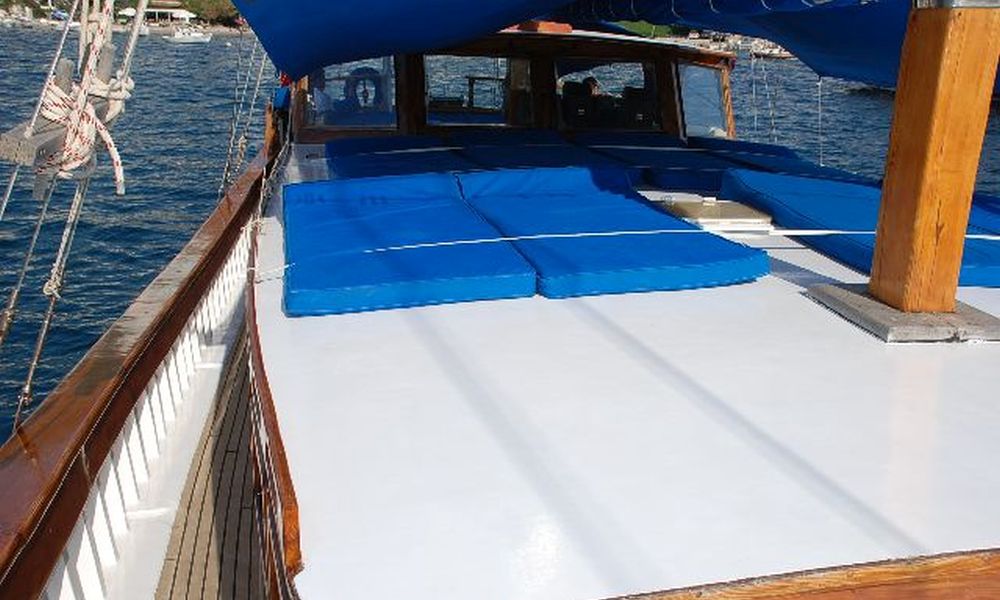 Unser 20 m langes Gulet Deniz C wurde 1987 gebaut. Seine endgültige Form erhielt es mit der Renovierung und Sanierung, die es 2010 durchlief. Unser Boot verfügt über 4 Doppelkabinen, jede stilvoller und komfortabler als die andere, mit eigener Dusche, WC und Klimaanlage. 3 Es gibt separate Wohnbereiche, eine voll ausgestattete Küche, Essbereiche im Innen- und Außenbereich sowie Ruhebereiche für die Besatzung.