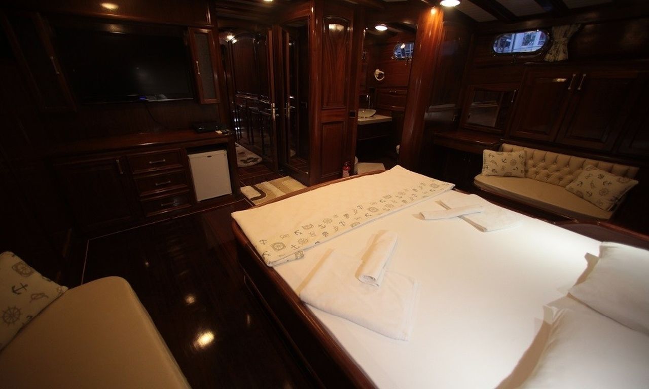 Die Doris 1 ist mit einem 12-V-, 24-V- und 220-V-Bordnetz sowie einer 24-Stunden-Klimaanlage ausgestattet und garantiert so Zuverlässigkeit und maximalen Komfort während der Reise. Entlang der malerischen Türkischen Riviera lädt die Gulet Doris 1 ihre Gäste ein, türkisfarbene Buchten, versteckte Meeresarme und idyllische Inseln zu entdecken – die perfekte Kombination aus Luxus, Abenteuer und authentischem Gulet-Charme.