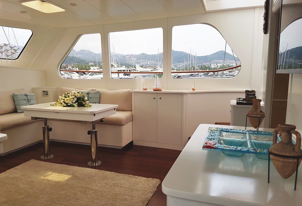 Es gibt ausreichend Sonnenkissen, Stühle und Serviersets für alle Gäste. Die Gulet Elifim 11 verfügt dank ihrer vollwertigen Radio-, GSM-Telefon- und Navigationsausrüstung über Bodrum, Göcek, Marmaris, Fethiye usw. Sie können sicher zu unseren Zielen der blauen Kreuzfahrt segeln. LCD-Fernseher, DVD-Player und Stereoanlage stehen unseren geschätzten Gästen der Blauen Reise in der Lounge unserer Gulet zur Verfügung.