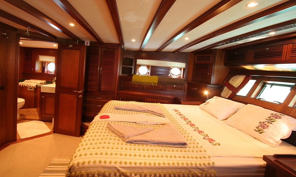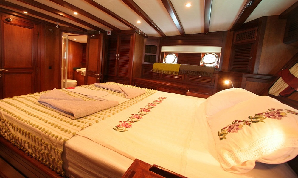 Unsere 22,60 m lange Gulet Freya wurde 2008 gebaut. Unser Boot verfügt über 4 Kabinen, 2 Master- und 2 Doppelkabinen, jede stilvoller und komfortabler, mit eigener Dusche, WC und Klimaanlage. 3 Es gibt separate Wohnbereiche, eine voll ausgestattete Küche, Essbereiche im Innen- und Außenbereich sowie Ruhebereiche für die Besatzung.