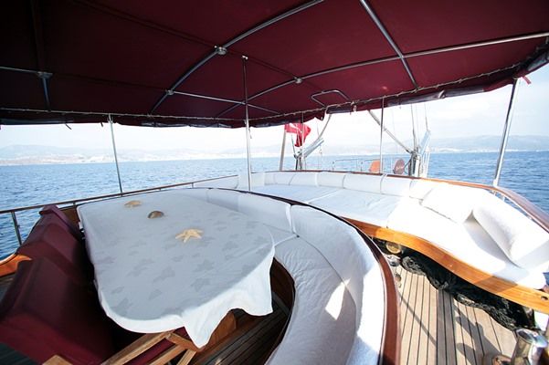 Es gibt ausreichend Sonnenkissen, Stühle und Serviersets für alle Gäste. Gulet Furkan verfügt dank seiner vollwertigen Radio-, GSM-Telefon-Navigationsausrüstung; Bodrum, Göcek, Marmaris, Fethiye usw. Sie können sicher zu unseren Zielen der Blauen Kreuzfahrt segeln.