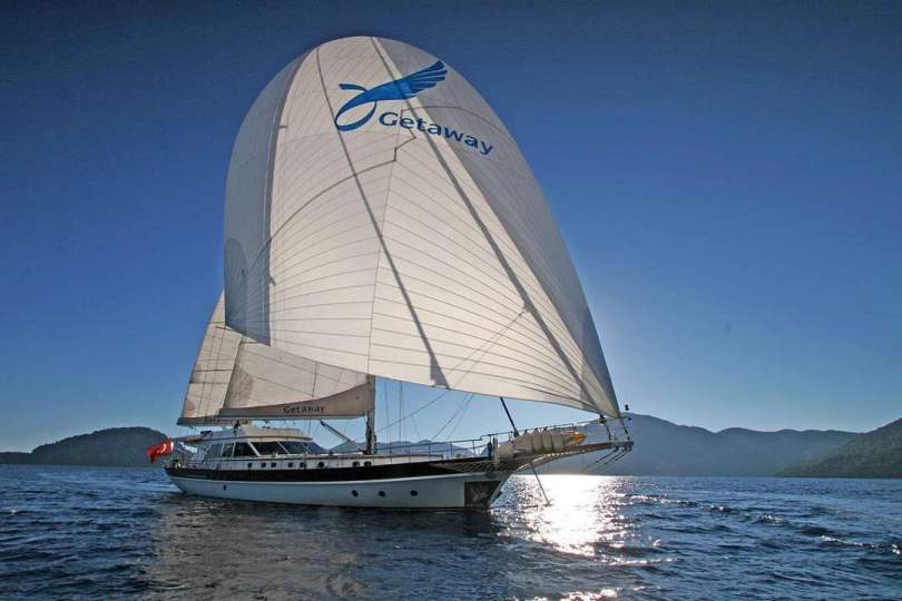 Unsere 31,60 m lange Gulet Getaway wurde 2009 gebaut. Ihre endgültige Form erhielt sie mit der Renovierung und Sanierung, die sie 2016 durchlief. Unser Boot verfügt über 4 Kabinen, 2 Master- und 2 Doppelkabinen, jede stilvoller und komfortabler, mit eigener Dusche, WC und Klimaanlage. 3 Es gibt separate Wohnbereiche, eine voll ausgestattete Küche, Essbereiche im Innen- und Außenbereich sowie Ruhebereiche für die Besatzung.