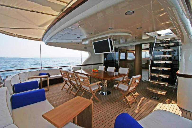 Es gibt ausreichend Sonnenkissen, Stühle und Serviersets für alle Gäste. Gulet Getaway verfügt dank seiner vollwertigen drahtlosen GSM-Telefonnavigationsausrüstung; Bodrum, Göcek, Marmaris, Fethiye usw. Sie können sicher zu unseren Zielen der Blauen Kreuzfahrt segeln.