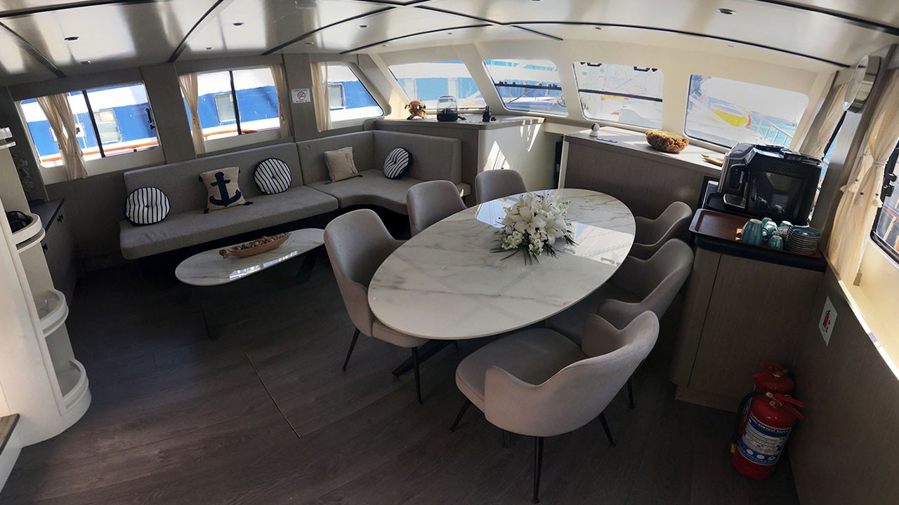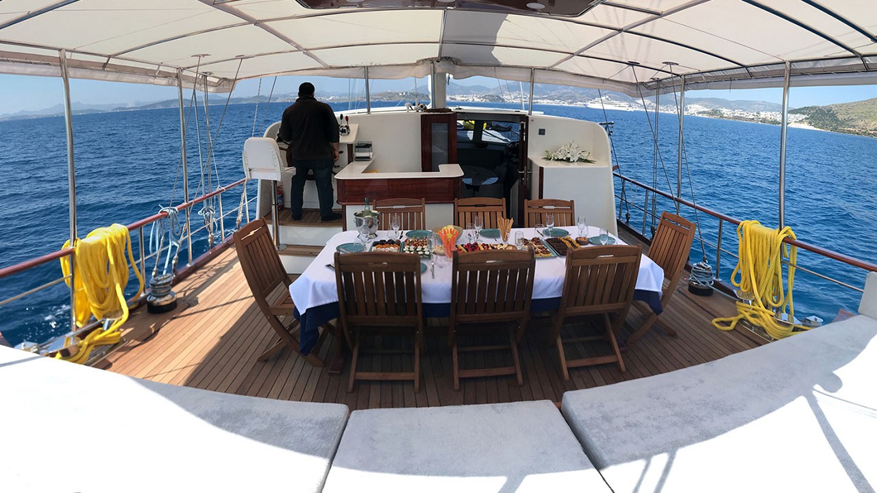 Es gibt ausreichend Sonnenkissen, Stühle und Serviersets für alle Gäste. Die Gulet Gulietta verfügt dank ihrer vollwertigen Radio-, GSM-Telefon-Navigationsausrüstung über eine hervorragende Navigationsausrüstung. Bodrum, Göcek, Marmaris, Fethiye usw. Sie können sicher zu unseren Zielen der Blauen Kreuzfahrt segeln.