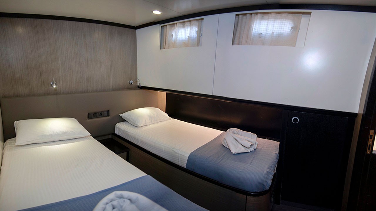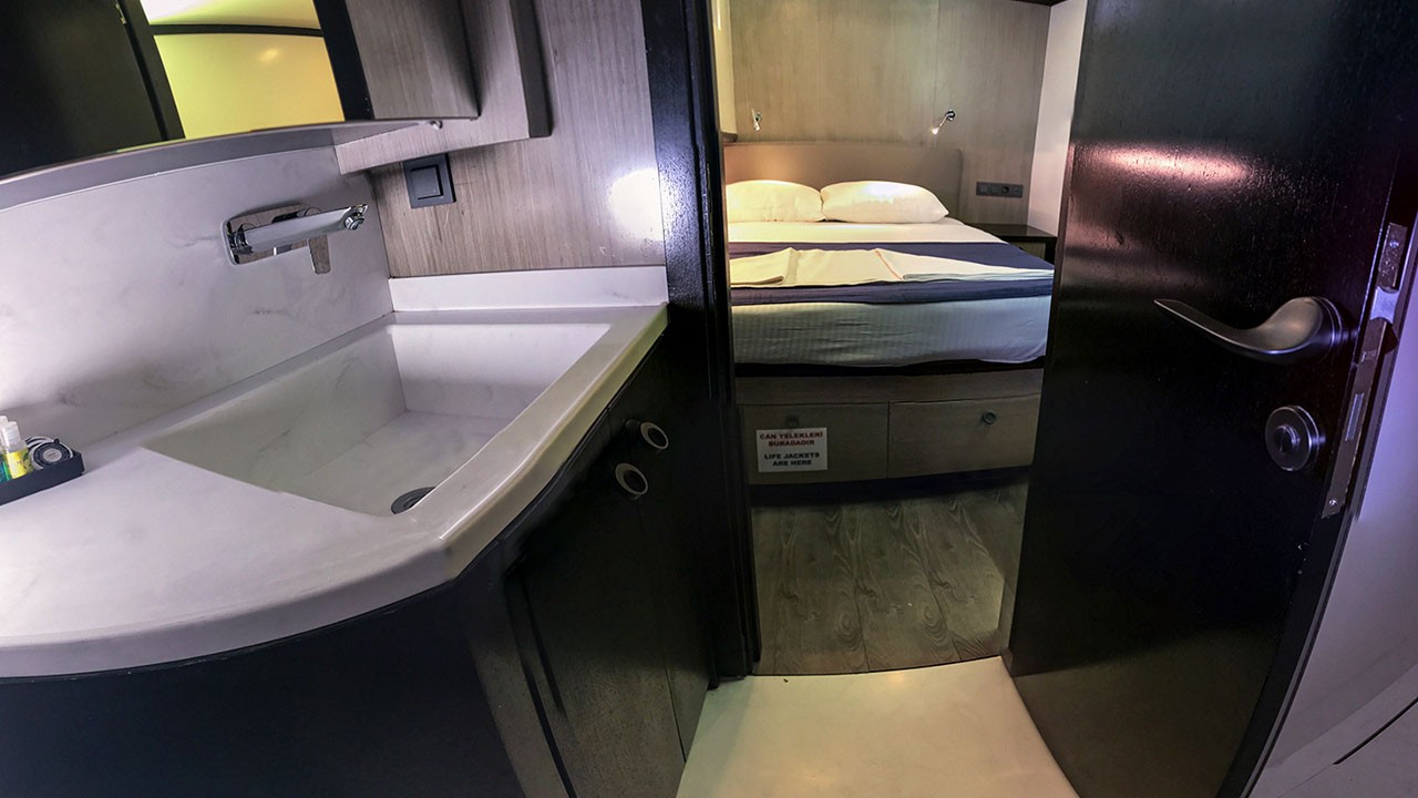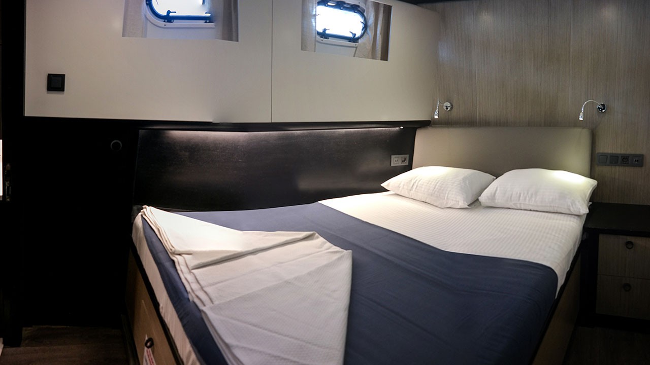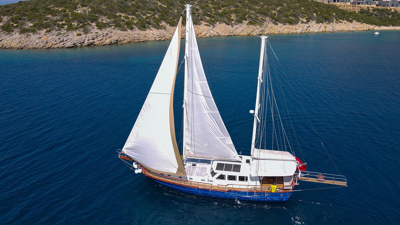 Unsere 22 m lange Gulet Gulietta wurde 2023 gebaut. Unser Boot verfügt über 4 Kabinen, 1 Zweibett- und 3 Doppelkabinen, jede stilvoller und komfortabler als die andere, mit eigener Dusche, WC und Klimaanlage. 3 Es gibt separate Wohnbereiche, eine voll ausgestattete Küche, Essbereiche im Innen- und Außenbereich sowie Ruhebereiche für die Crew.