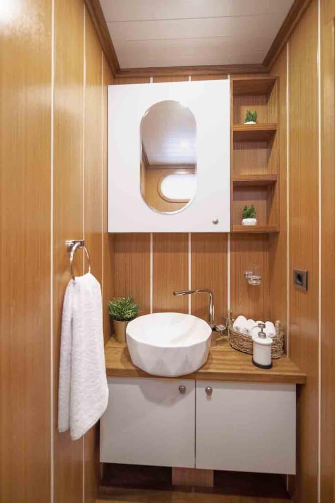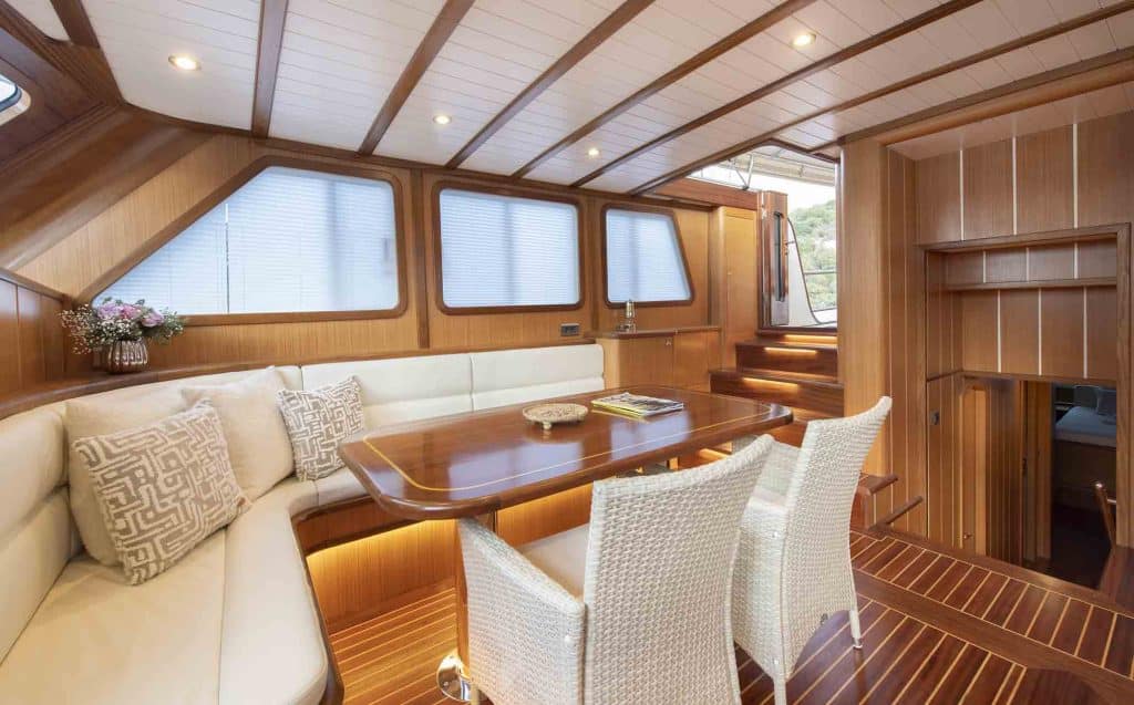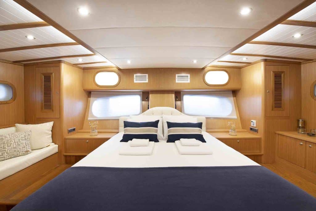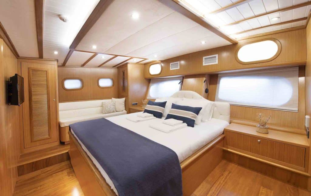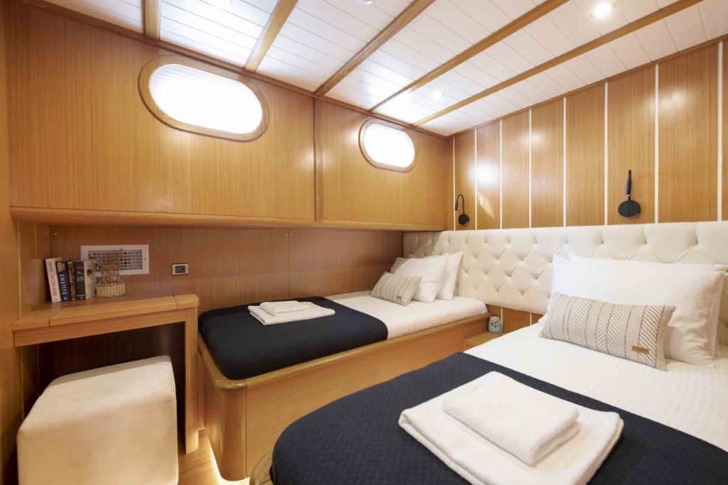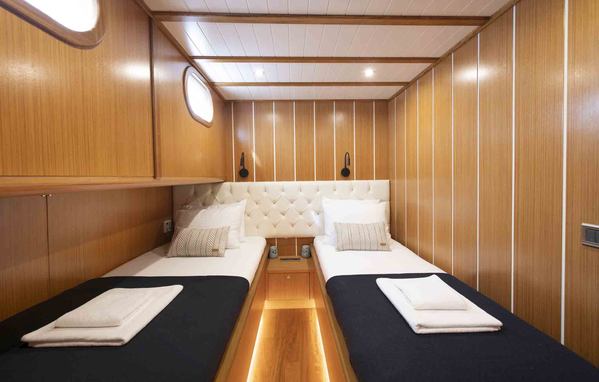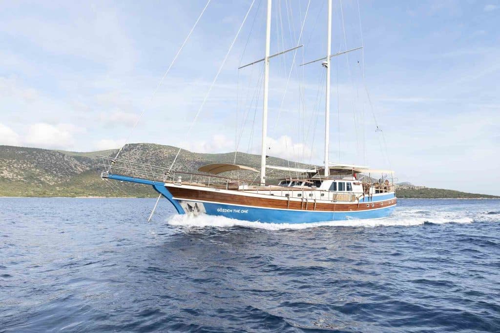 Unser 26 m langes Gulet Gozdem The One wurde 2022 gebaut. Unser Boot verfügt über 5 Kabinen, darunter 2 Doppel- und 3 Zweibettkabinen, jede stilvoller und komfortabler, mit eigener Dusche, WC und Klimaanlage. 3 Es gibt separate Wohnbereiche, eine voll ausgestattete Küche, Essbereiche im Innen- und Außenbereich sowie Ruhebereiche für die Besatzung.