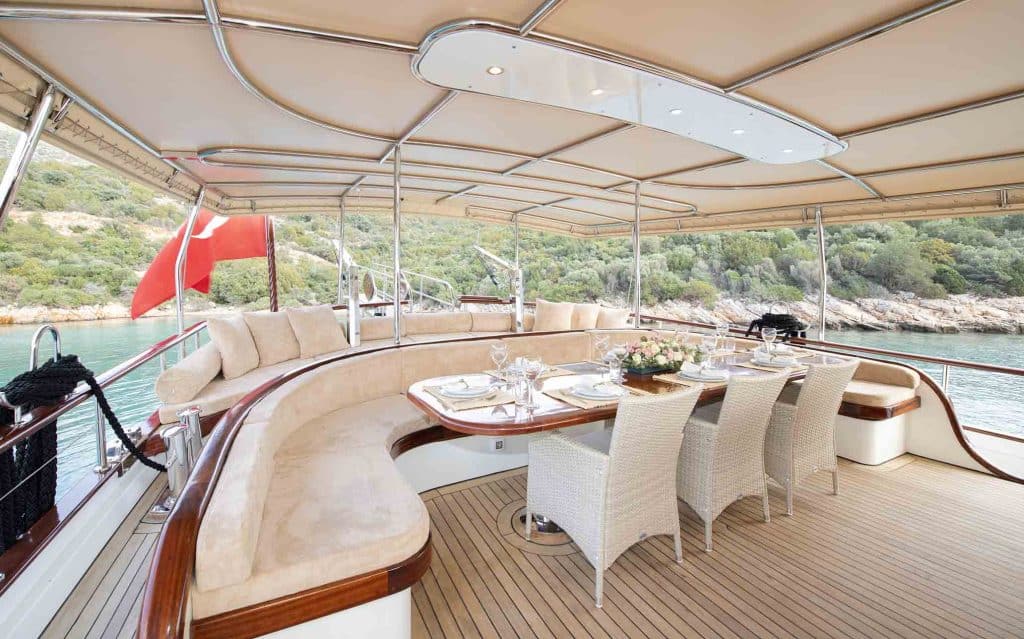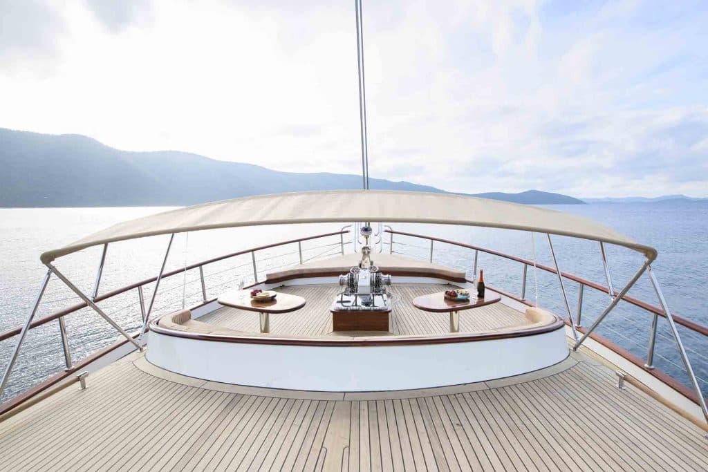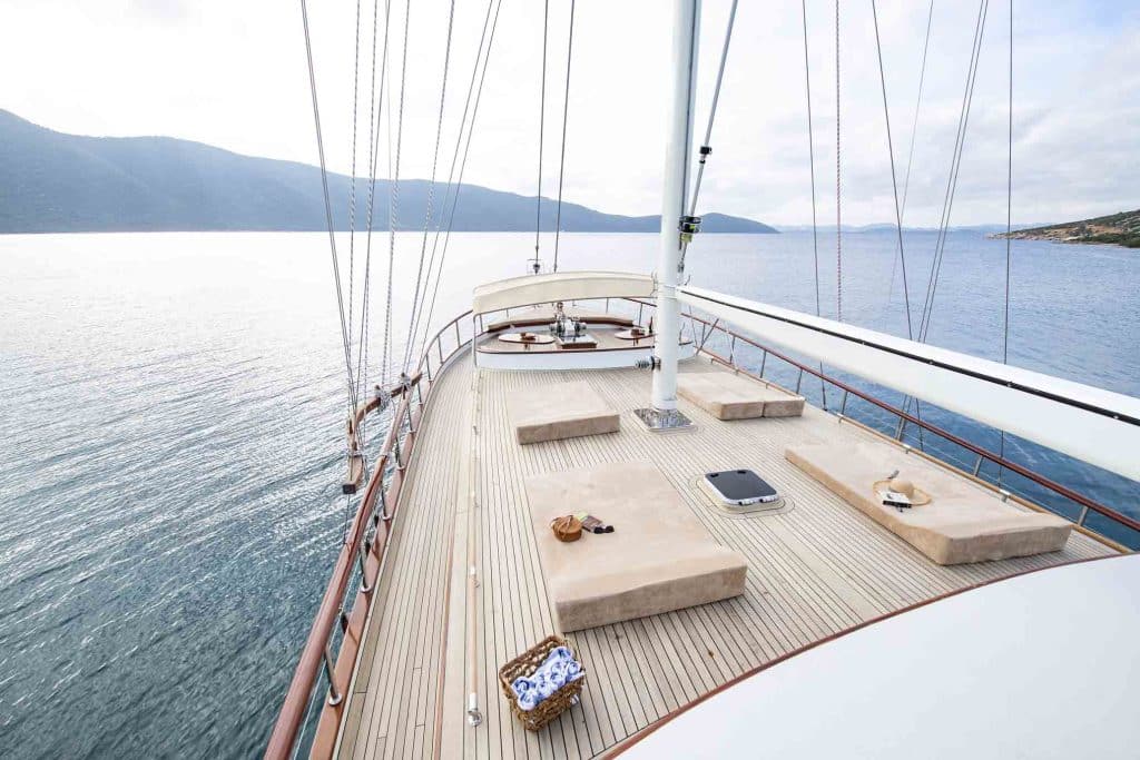 Es gibt ausreichend Sonnenkissen, Stühle und Serviersets für alle Gäste. Gulet Gozdem The One verfügt dank seiner vollwertigen drahtlosen GSM-Telefonnavigationsausrüstung über eine vollwertige drahtlose GSM-Telefonnavigationsausrüstung. Bodrum, Göcek, Marmaris, Fethiye usw. Sie können sicher zu unseren Zielen der Blauen Kreuzfahrt segeln.