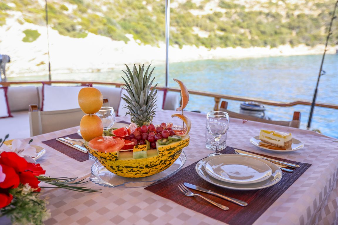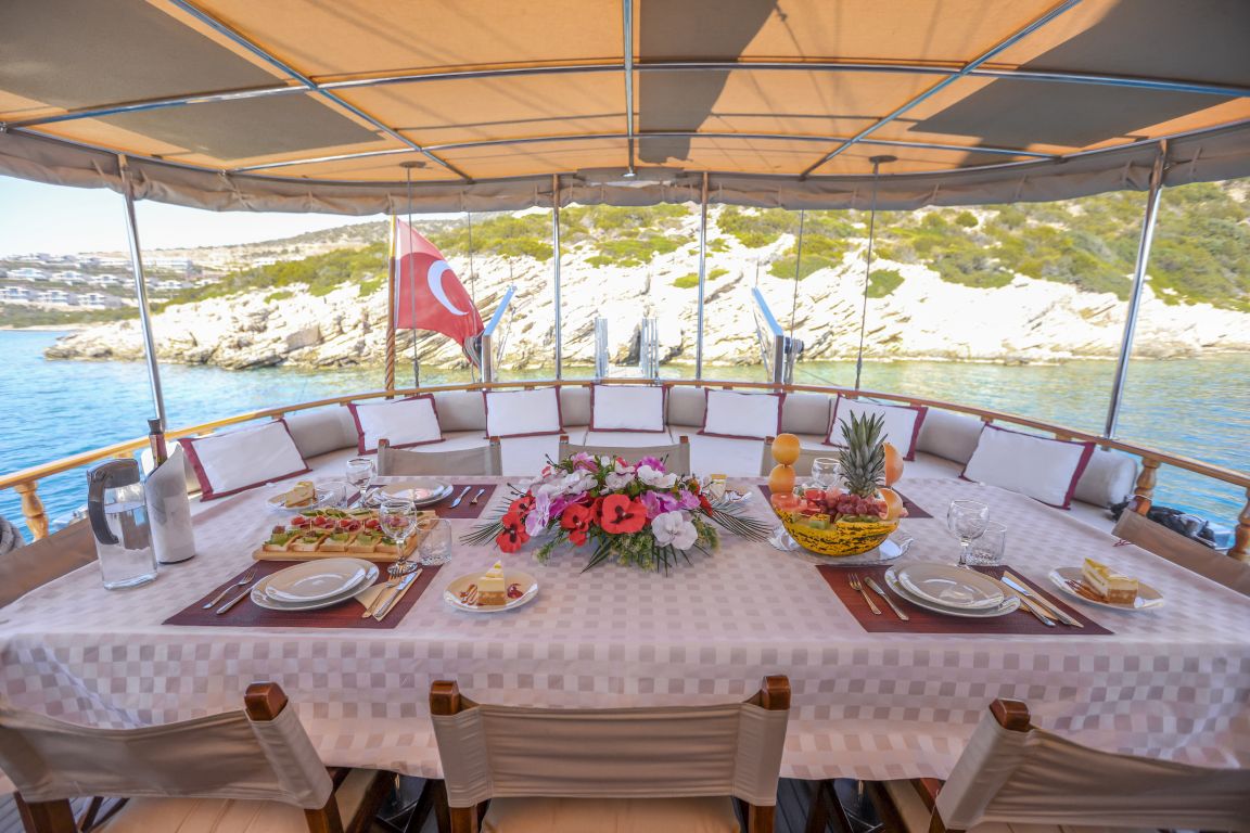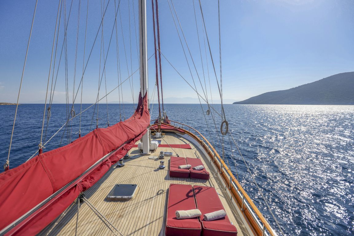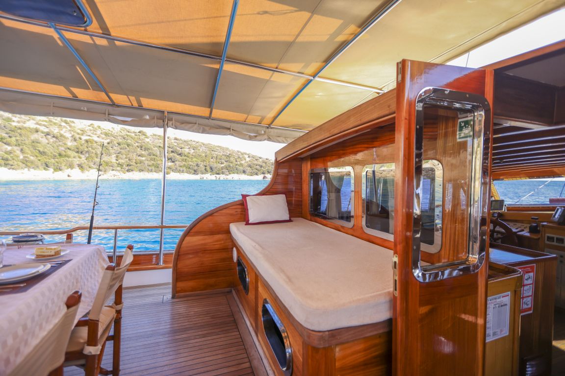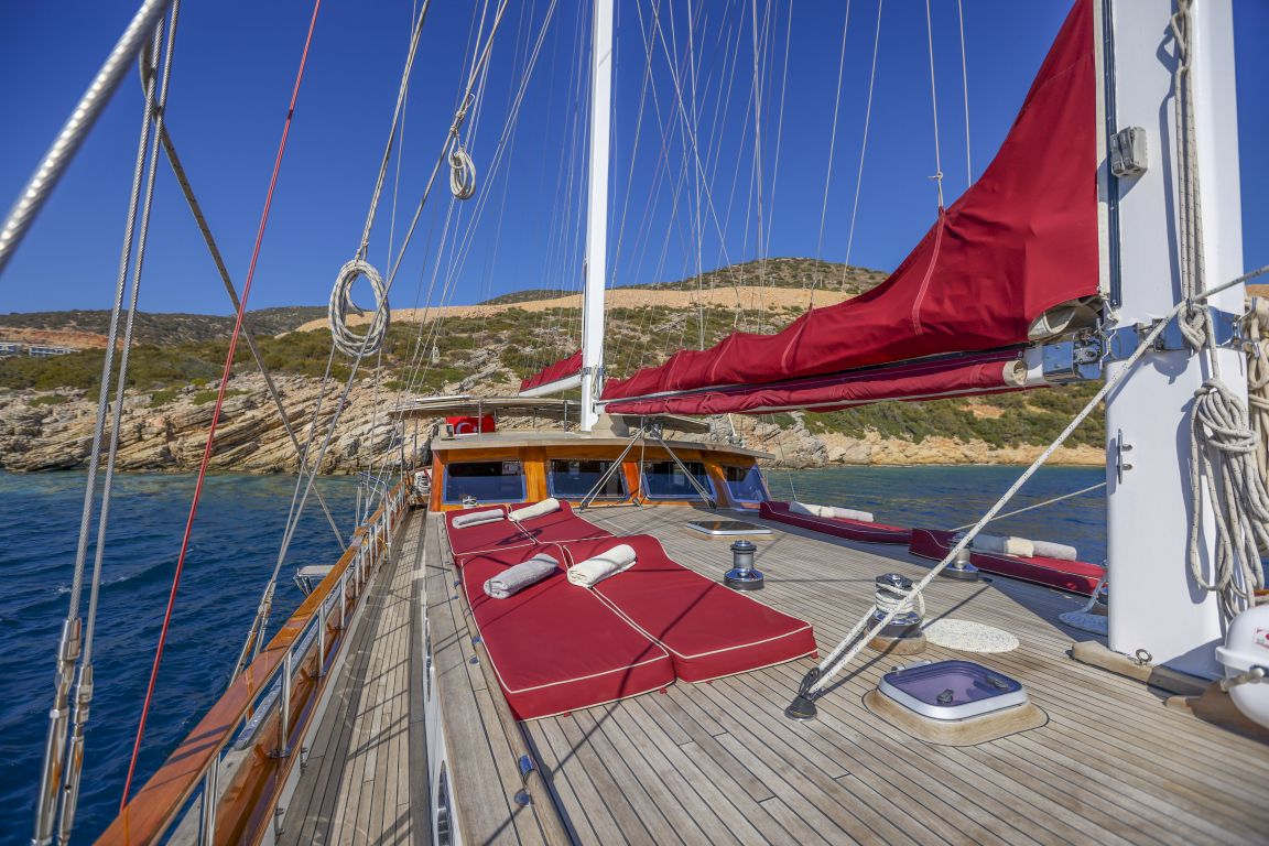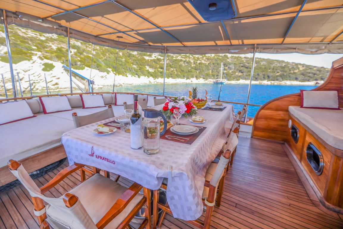 Für alle Gäste stehen ausreichend Sonnenliegen, Stühle und Geschirr zur Verfügung. Dank der modernen GSM-Telefon-Navigationsausrüstung können Sie mit der Gulet Il Fratello sicher zu unseren Zielen für Blaue Reisen segeln, darunter Bodrum, Göcek, Marmaris und Fethiye.