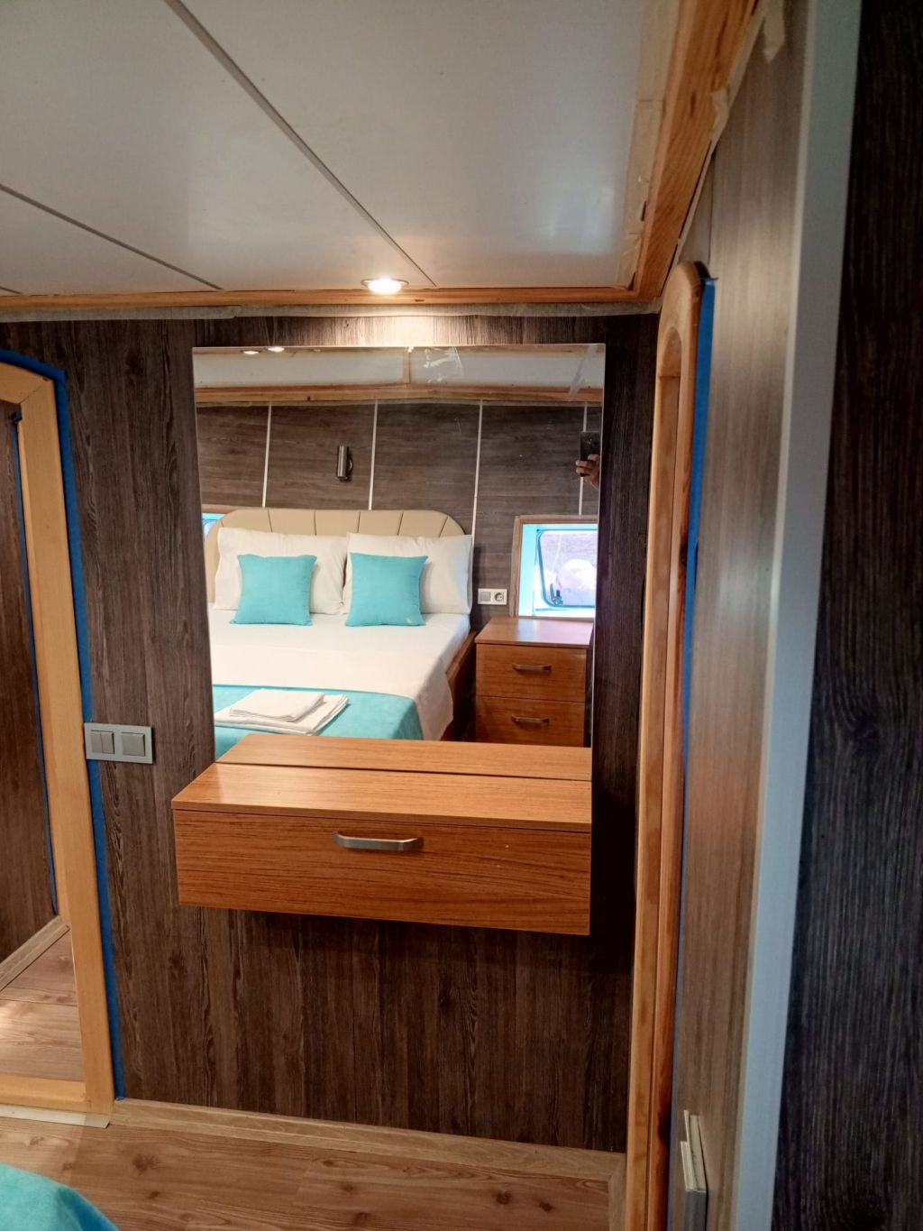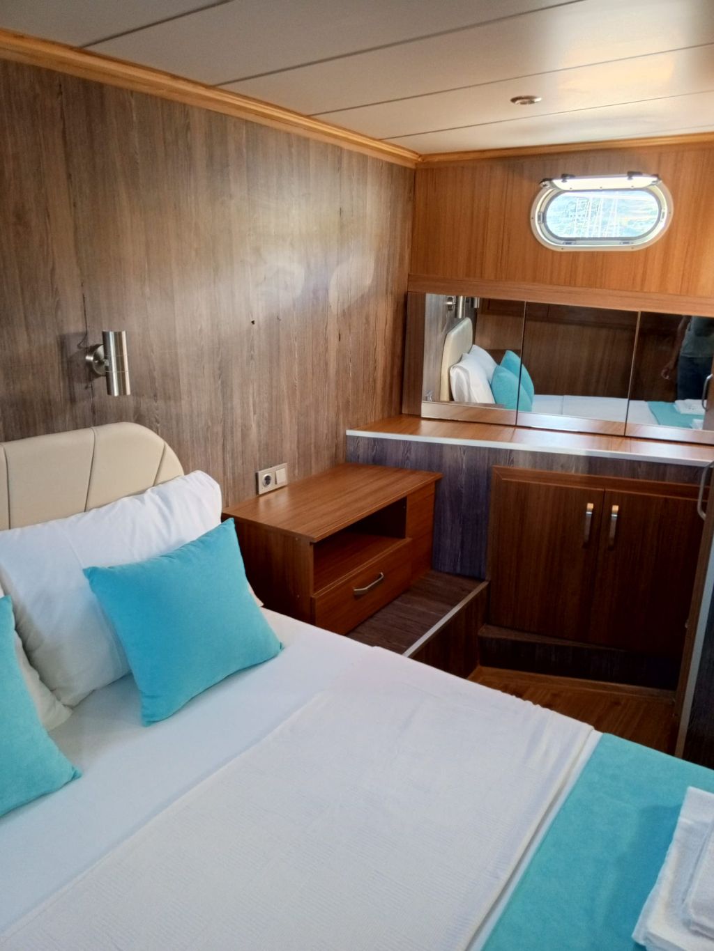 Der Innenbereich des Schiffes umfasst einen gemütlichen Salon mit Essbereich, eine voll ausgestattete Kombüse und moderne Annehmlichkeiten wie Fernseher, DVD-/CD-Player, GPS, UKW-Funkgerät und WLAN. Während der Sommerkreuzfahrten steht Ihnen täglich fünf Stunden lang eine Klimaanlage zur Verfügung, die für zusätzlichen Komfort sorgt. Entspannen Sie sich auf geräumigen Sonnenliegen oder genießen Sie ein Essen im Freien im Schatten. Für alle Wassersportbegeisterten bietet die Gulet Junior Irfan eine Vielzahl an Aktivitäten, darunter ein Beiboot mit Außenbordmotor, ein Kanu, ein Stand-Up-Paddleboard, Schnorchelausrüstung und Angelausrüstung. Das Schiff verfügt über einen 265 PS starken Motor, einen 12-kVA-Generator und erreicht eine Reisegeschwindigkeit von 8 Knoten. So ist eine zuverlässige Leistung für eine ruhige Fahrt über das türkisfarbene Wasser garantiert. Mit einer Breite von 4,45 m bietet sie Stabilität und Geräumigkeit und ist damit die ideale Wahl für Familien oder Freundesgruppen. Die Gulet Junior Irfan startet in Göcek und Fethiye und lädt Sie ein, versteckte Buchten, ruhige Ankerplätze und die atemberaubenden Inseln der türkischen Südwestküste zu entdecken – eine Kombination aus Tradition, Komfort und unvergesslichen maritimen Abenteuern.