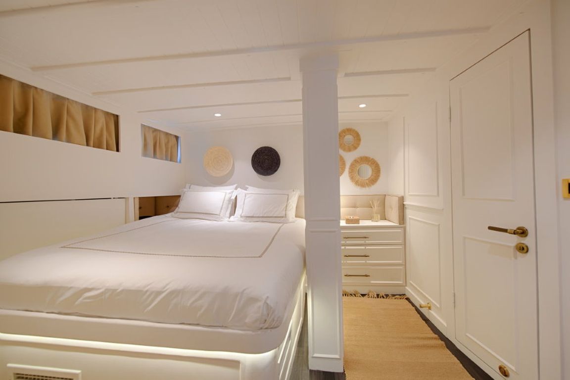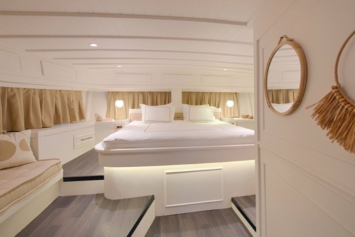 Die Gulet Liberte 11 ist eine 27 Meter lange traditionelle Gulet, die 1990 gebaut und 2018 renoviert wurde. Sie vereint klassischen Charme mit modernem Komfort. Das Schiff verfügt über vier Kabinen, darunter zwei Master-Kabinen und zwei Doppelkabinen, alle mit eigenem Bad, und bietet Platz für bis zu acht Gäste. Die Breite von 6,10 Metern sorgt für viel Platz im Schiff und an Deck.
