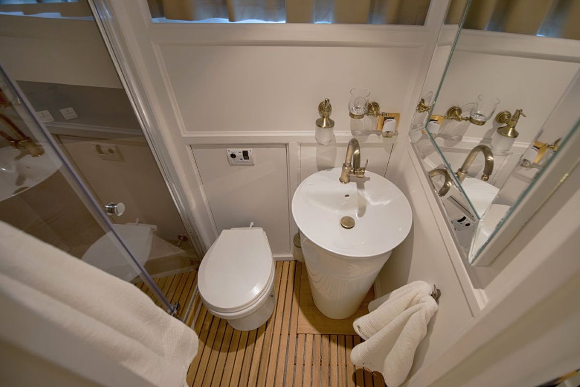 Das Schiff wird von zwei Iveco-Motoren mit je 280 PS angetrieben, die von Generatoren mit 22 + 11 kVA unterstützt werden, und erreicht eine Reisegeschwindigkeit von 10 Knoten. Die Stromversorgung erfolgt über 12 V, 24 V und 220 V, und die Klimaanlage ist 16 Stunden täglich in Betrieb und sorgt so für Komfort rund um die Uhr.