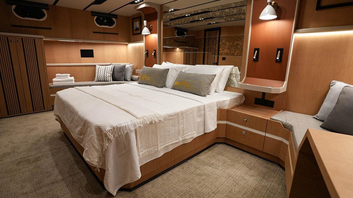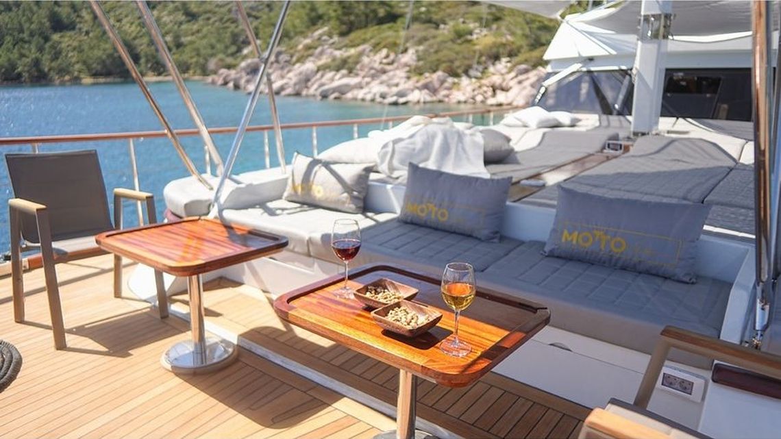 Die Außenbereiche der Motto sind für angenehme Momente im Freien konzipiert. Das Achterdeck verfügt über einen geräumigen Essbereich und gemütliche Sitzgelegenheiten, während das Vordeck Sonnenmatratzen und einen entspannenden Loungebereich bietet. Den ganzen Tag über können die Gäste in kristallklaren Buchten schwimmen, die Sonne genießen oder Wasserspielzeug wie Paddleboards, Kanus und Schnorchelausrüstung nutzen – perfekt für einen aktiven Yachtcharter in der Türkei.