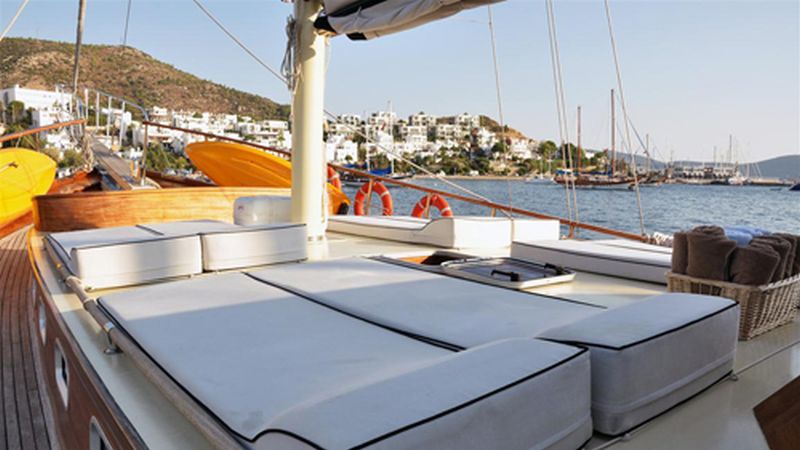 Es gibt ausreichend Sonnenkissen, Stühle und Serviersets für alle Gäste. Die Gulet Neptun verfügt dank ihrer vollwertigen Radio-, GSM-Telefon- und Navigationsausrüstung; Bodrum, Göcek, Marmaris, Fethiye usw. Sie können sicher zu unseren Zielen der Blauen Kreuzfahrt segeln.