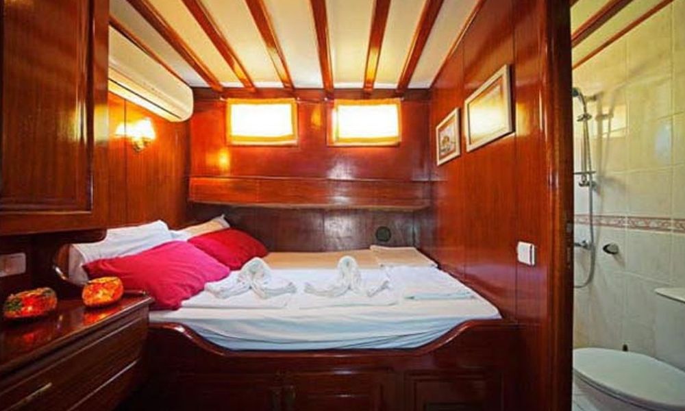 Unser 20 m langes Gulet Prenses Gulce wurde 2007 gebaut. Unser Boot verfügt über 4 Kabinen: 2 Master und 2 Double-Kabinen, jede stilvoller und komfortabler, mit eigener Dusche, WC und Klimaanlage. 3 Es gibt separate Wohnbereiche, eine voll ausgestattete Küche, Essbereiche im Innen- und Außenbereich sowie Ruhebereiche für die Besatzung. Es gibt ausreichend Sonnenkissen, Stühle und Serviersets für alle Gäste. Dank seiner vollwertigen Radio und GSM-Telefonnavigationsausrüstung können Sie mit dem Gulet Prenses Gulce sicher zu unseren Zielen der blauen Reise segeln: Bodrum, Göcek, Marmaris, Fethiye usw.
