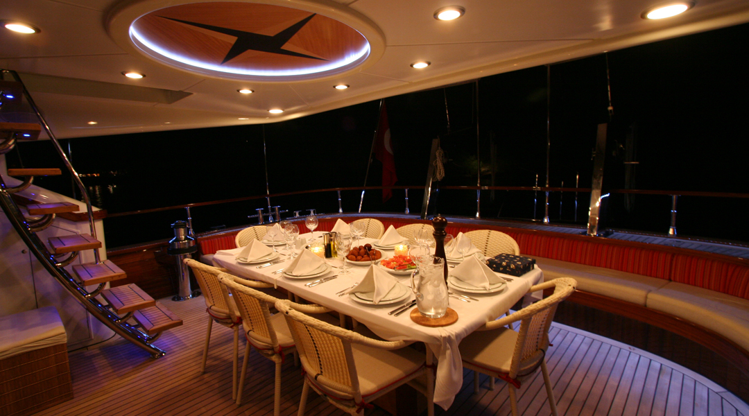 Es gibt ausreichend Sonnenkissen, Stühle und Serviersets für alle Gäste. Die Gulet Serenity 86 verfügt dank ihrer vollwertigen Radio-, GSM-Telefon-Navigationsausrüstung über eine vollwertige Navigationsausrüstung. Bodrum, Göcek, Marmaris, Fethiye usw. Sie können sicher zu unseren Zielen der Blauen Kreuzfahrt segeln.