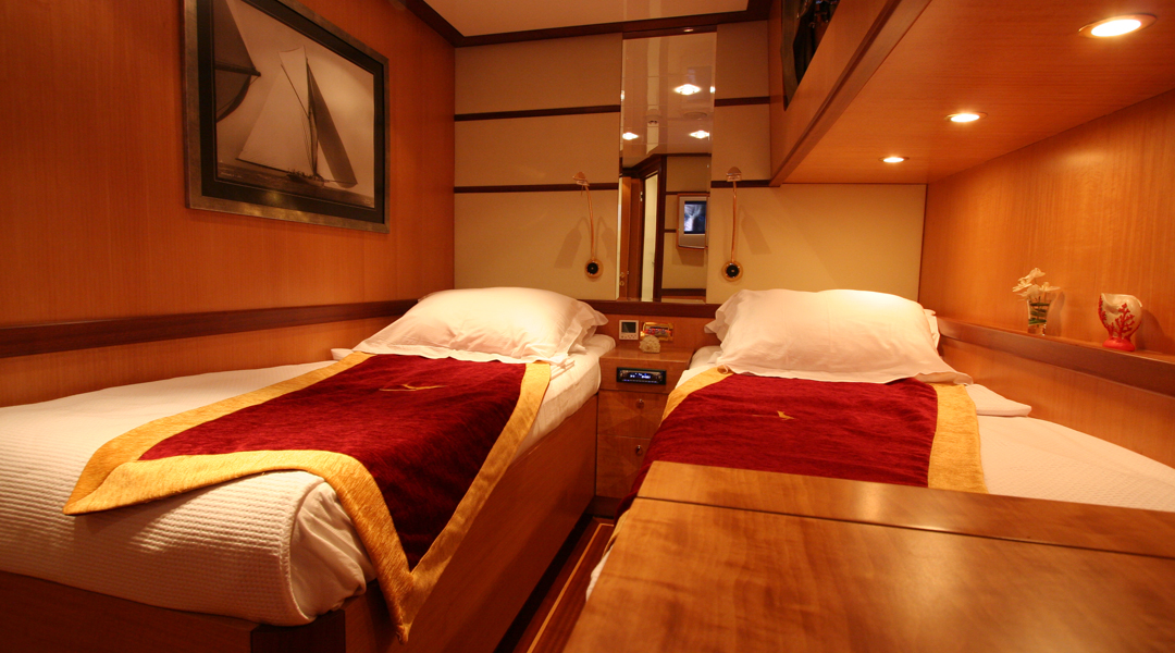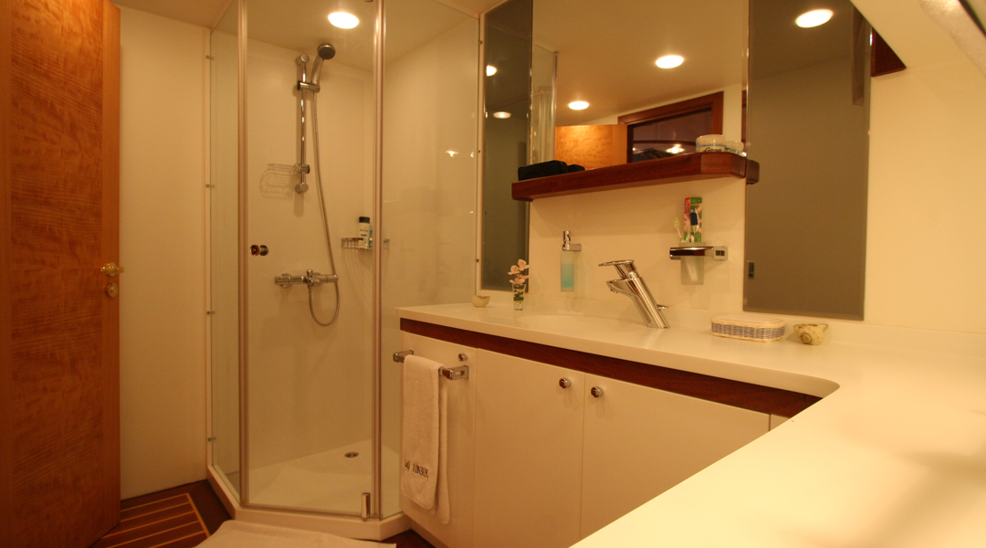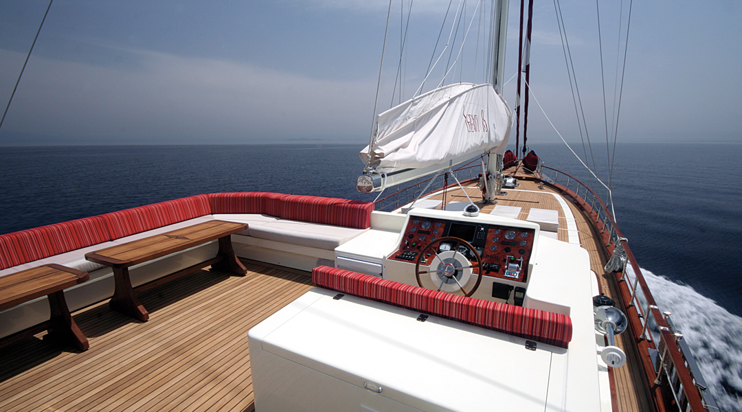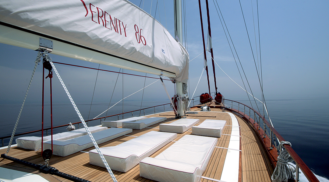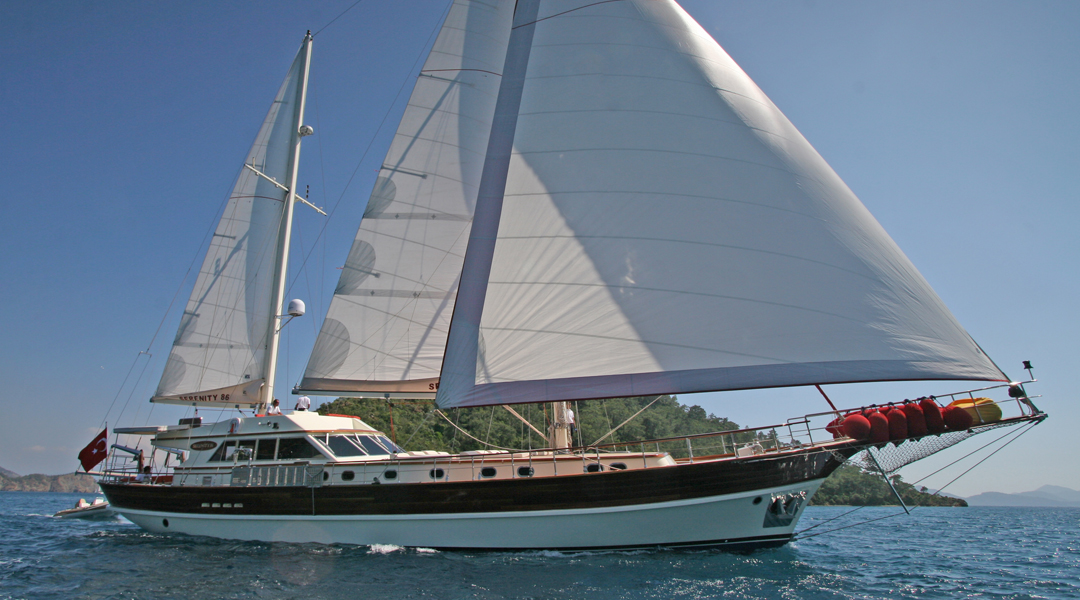 Unsere 30 m lange Gulet Serenity 86 wurde 2007 gebaut. Ihre endgültige Form erhielt sie mit der Renovierung und Sanierung im Jahr 2019. Unser Boot verfügt über 6 Kabinen, darunter 1 Master-, 3 Doppel- und 2 Zweibettkabinen, jede stilvoller und komfortabler, mit eigener Dusche, WC und Klimaanlage. 3 Es gibt separate Wohnbereiche, eine voll ausgestattete Küche, Essbereiche im Innen- und Außenbereich sowie Ruhebereiche für die Crew.