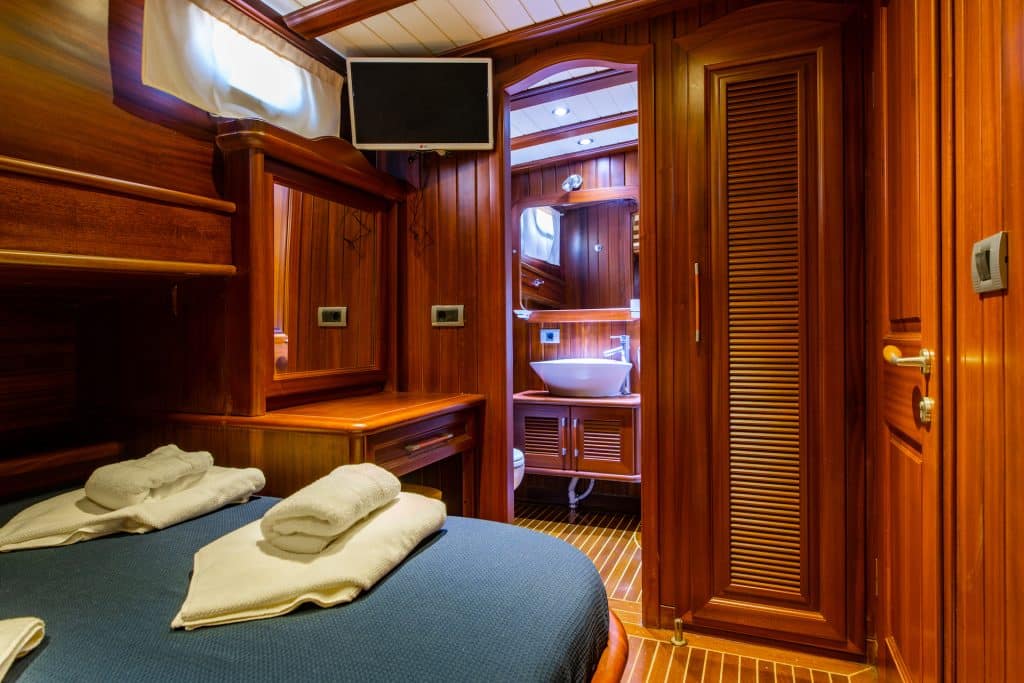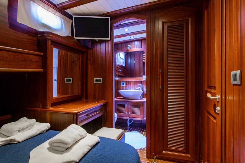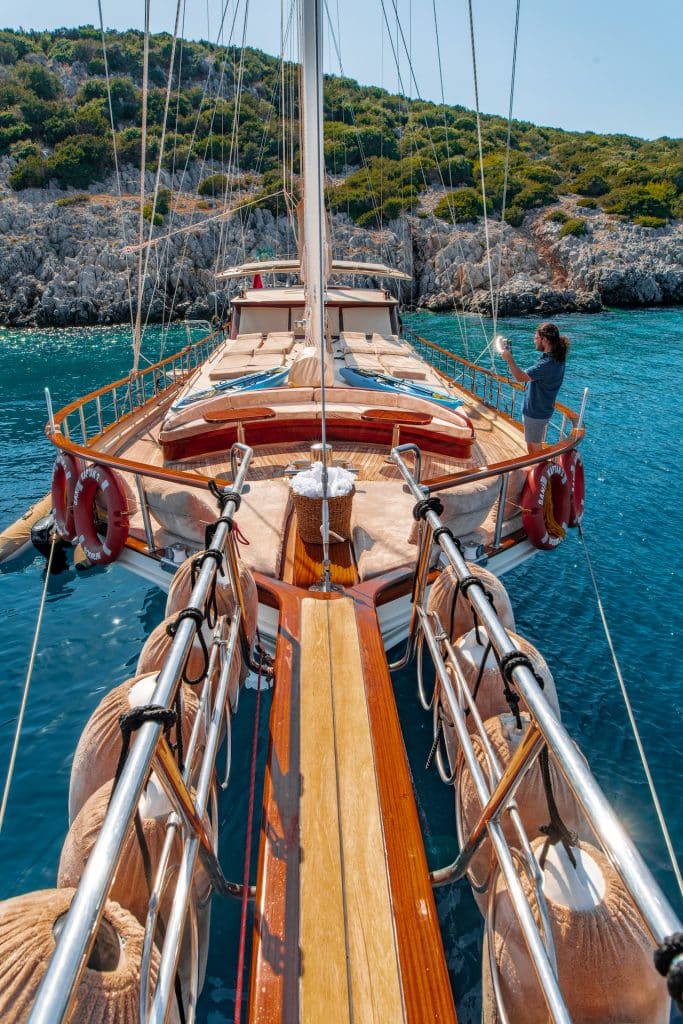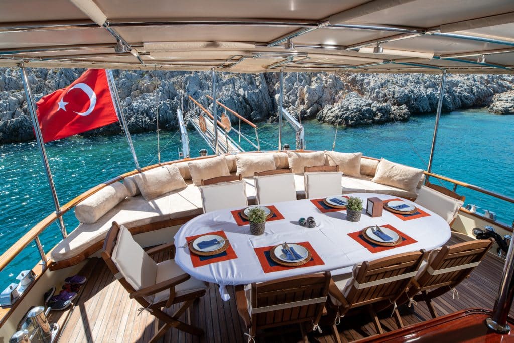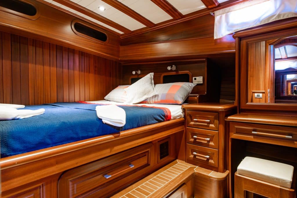 Unser 24 m langes Gulet Sani Kaptan wurde 2006 gebaut. Seine endgültige Form erhielt es mit der Renovierung und Sanierung im Jahr 2020. Unser Boot verfügt über 4 Kabinen,