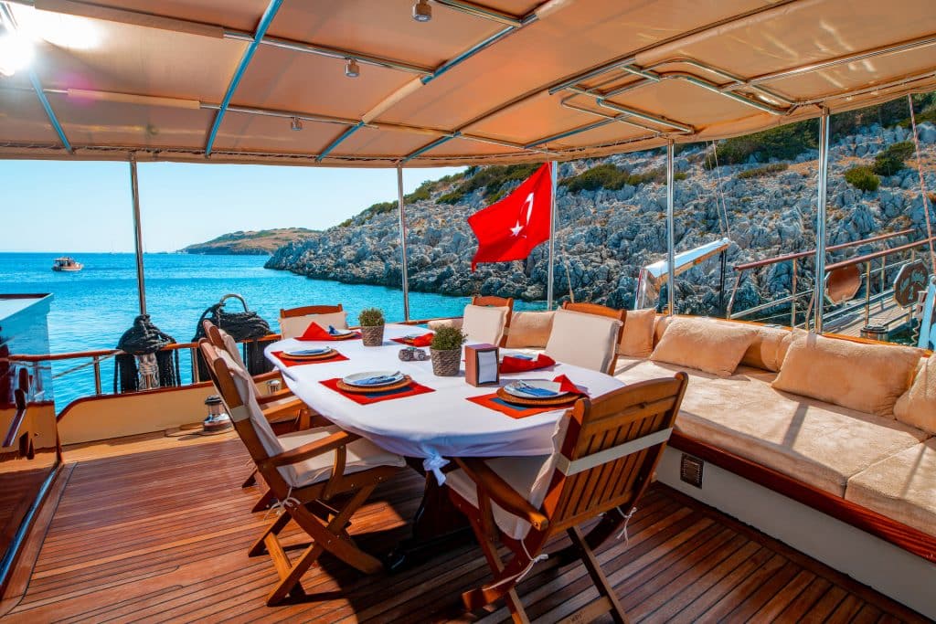 ein Gulet für eine Woche in den Regionen Bodrum, Göcek, Fethiye, Marmaris oder Gökova zu mieten.