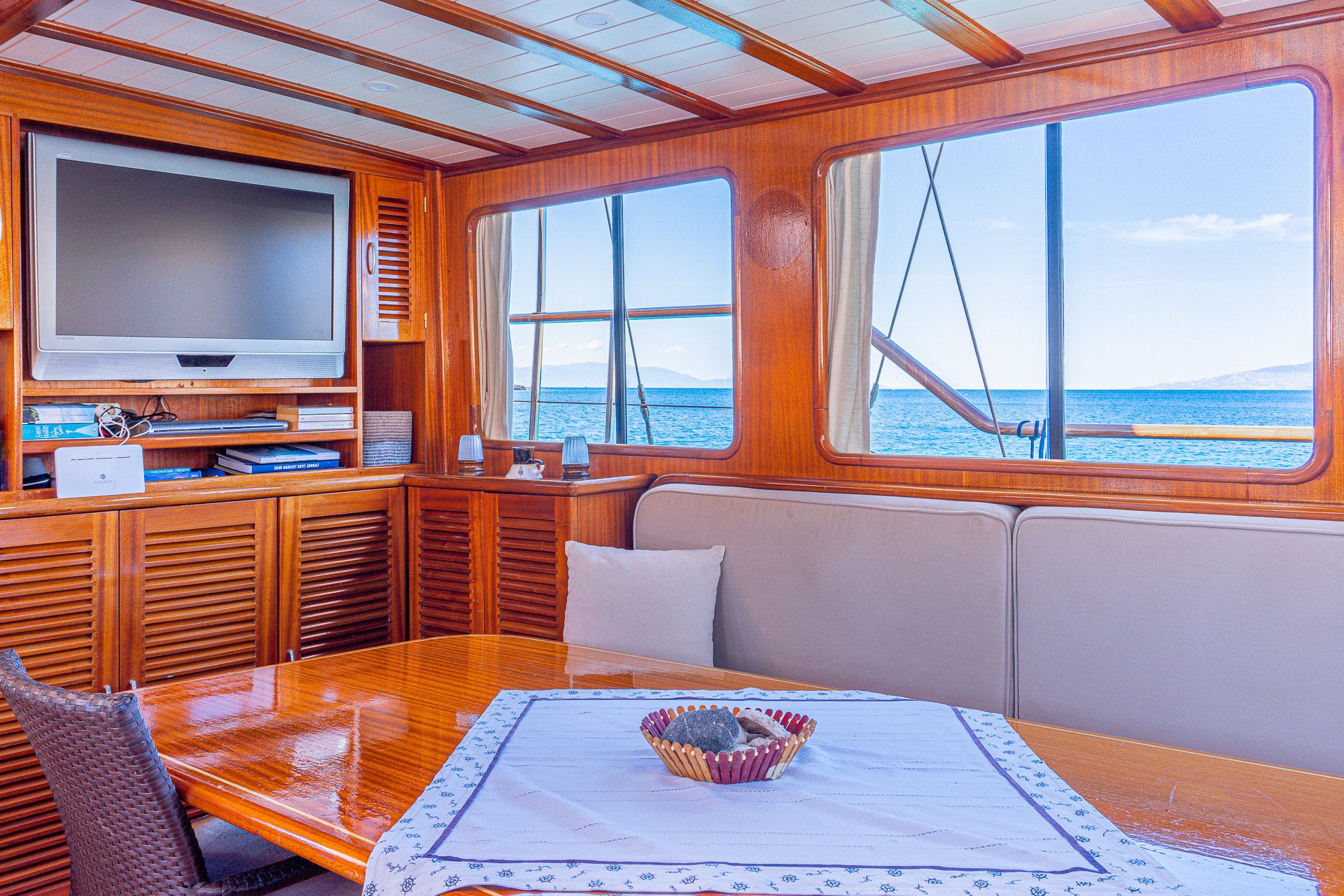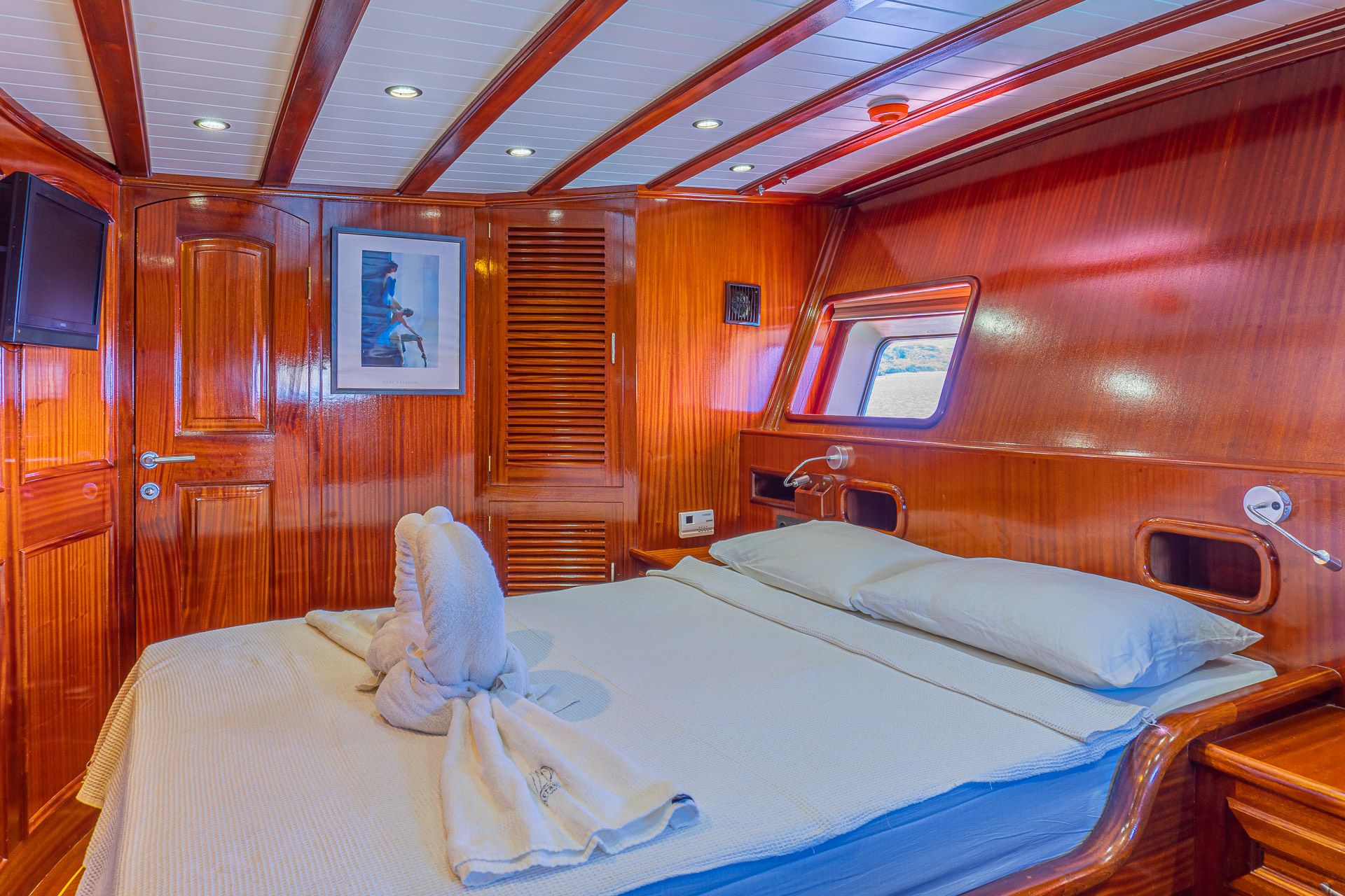 Unser 19 m langes Gulet Avrasya wurde 1994 gebaut. Seine endgültige Form erhielt es mit der Renovierung und Sanierung, die es 2018 durchlief. Unser Boot verfügt über 5 Kabinen Doppel, jede stilvoller und komfortabler als die andere, mit eigener Dusche, WC und Klimaanlage. 4 Es gibt separate Wohnbereiche, eine voll ausgestattete Küche, Essbereiche im Innen- und Außenbereich sowie Ruhebereiche für die Besatzung. Es gibt ausreichend Sonnenkissen, Stühle und Serviersets für alle Gäste. Gulet Avrasya verfügt dank seiner vollwertigen Radio-, GSM-Telefon- und Navigationsausrüstung; Bodrum, Göcek, Marmaris, Fethiye usw. Sie können sicher zu unseren Zielen der Blauen Kreuzfahrt segeln.