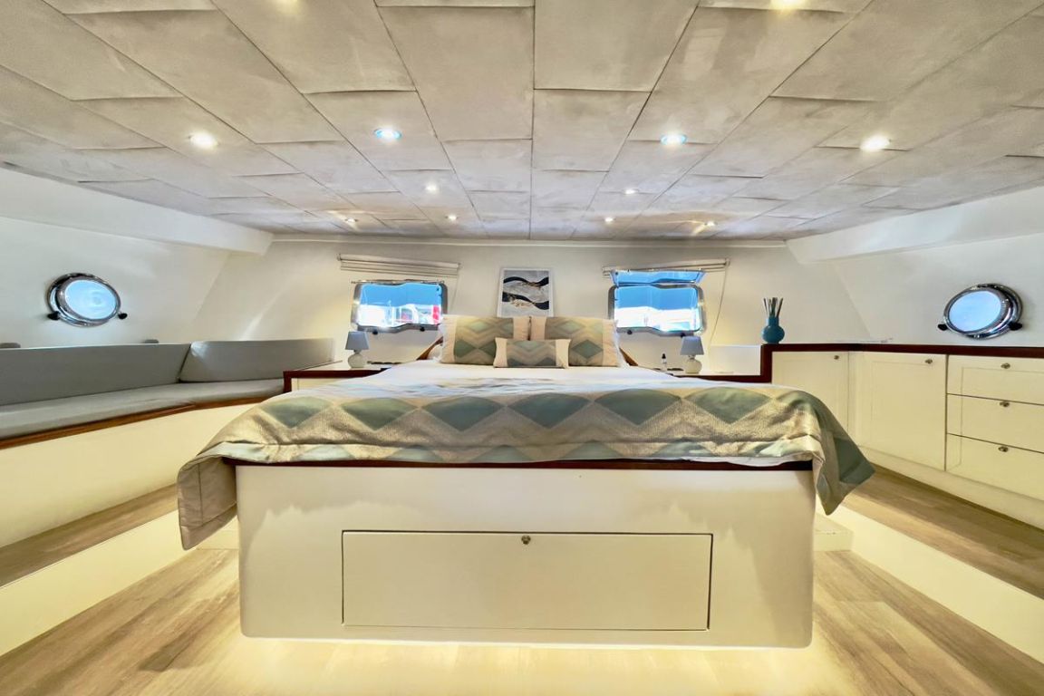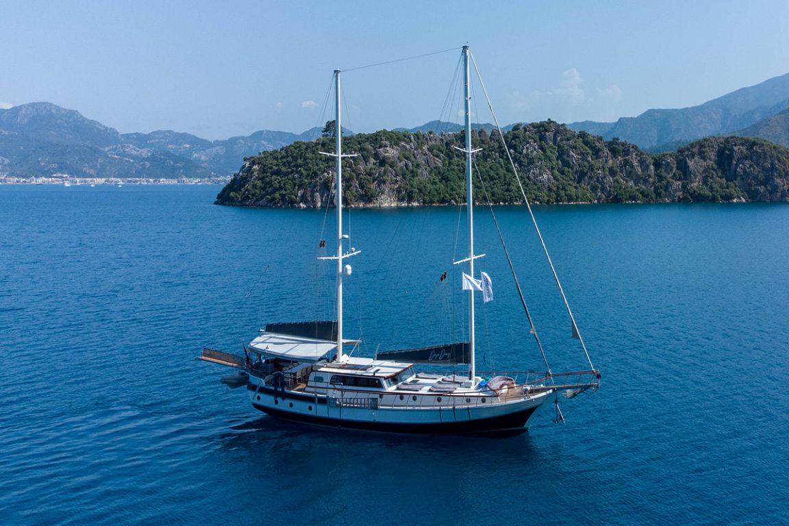 Unser 24 m langes Gulet Derya Deniz wurde 2008 gebaut. Seine endgültige Form erhielt es mit der Renovierung und Sanierung, die es 2021 durchlief. Unser Boot verfügt über 5 Kabinen, 2 Master- und 3 Doppelkabinen, jede stilvoller und komfortabler als die andere, mit eigener Dusche, WC und Klimaanlage. 4 Es gibt separate Wohnbereiche, eine voll ausgestattete Küche, Essbereiche im Innen- und Außenbereich sowie Ruhebereiche für die Crew. Es gibt ausreichend Sonnenkissen, Stühle und Serviersets für alle Gäste. Gulet Derya Deniz verfügt dank seiner vollwertigen Radio-, GSM-Telefon- und Navigationsausrüstung; Bodrum, Göcek, Marmaris, Fethiye usw. Sie können sicher zu unseren Zielen der Blauen Kreuzfahrt segeln.